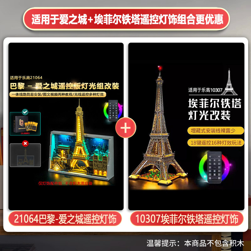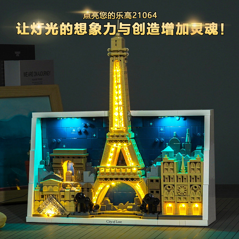 📚 BrickBling适用乐高灯光21064巴黎爱之城建筑积木灯饰配件改装LED