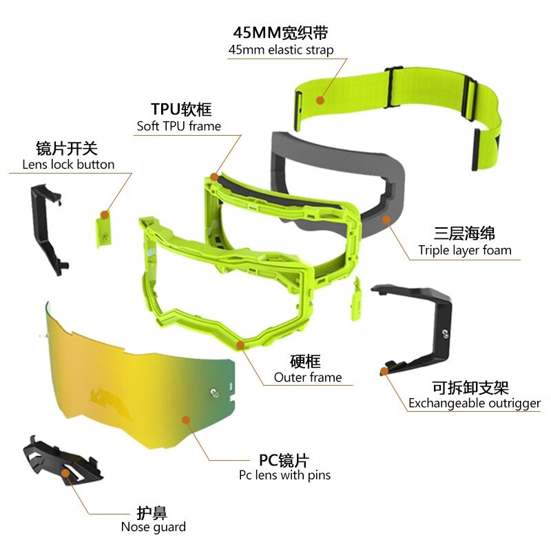 📚 TR越野摩托车风镜赛车机车头盔护目镜高清防刮防雾镜片拉力盔风镜