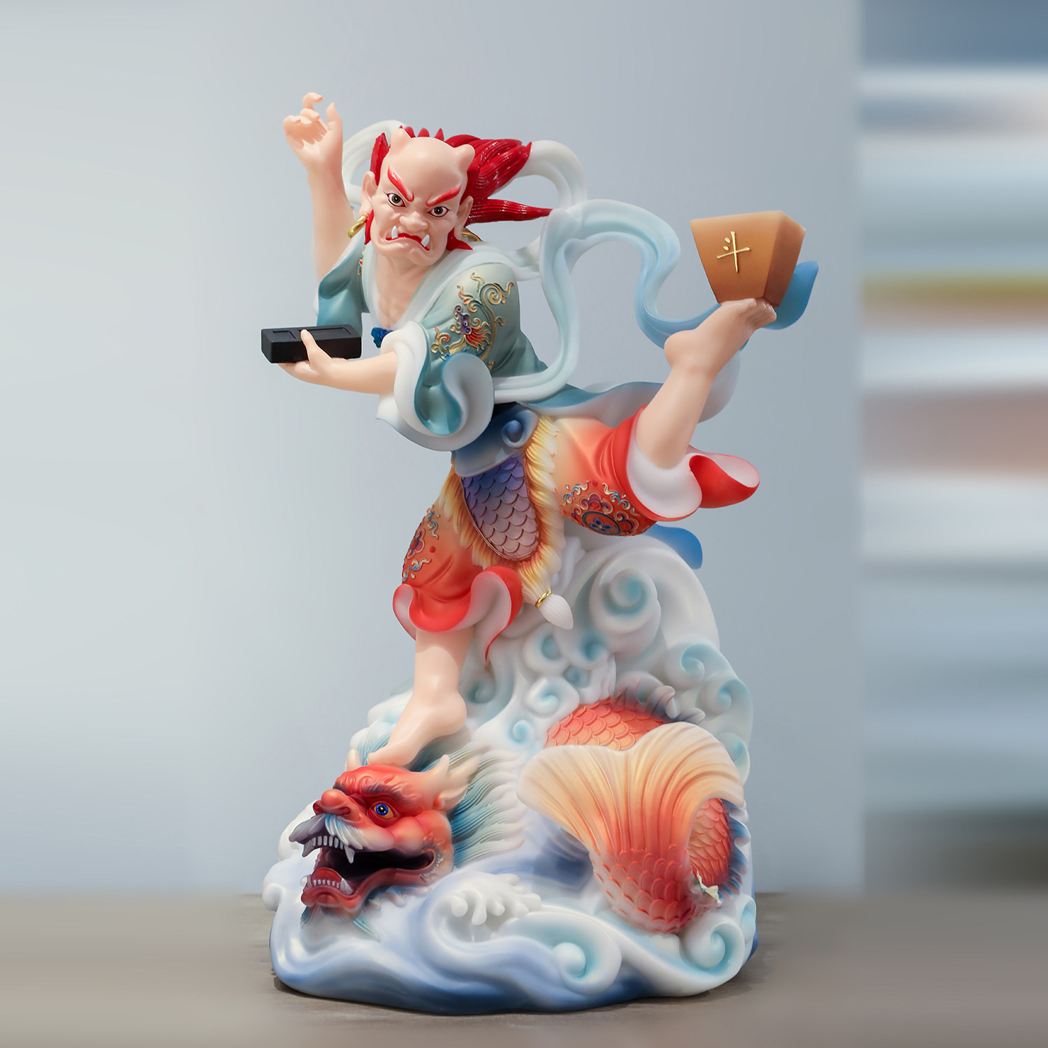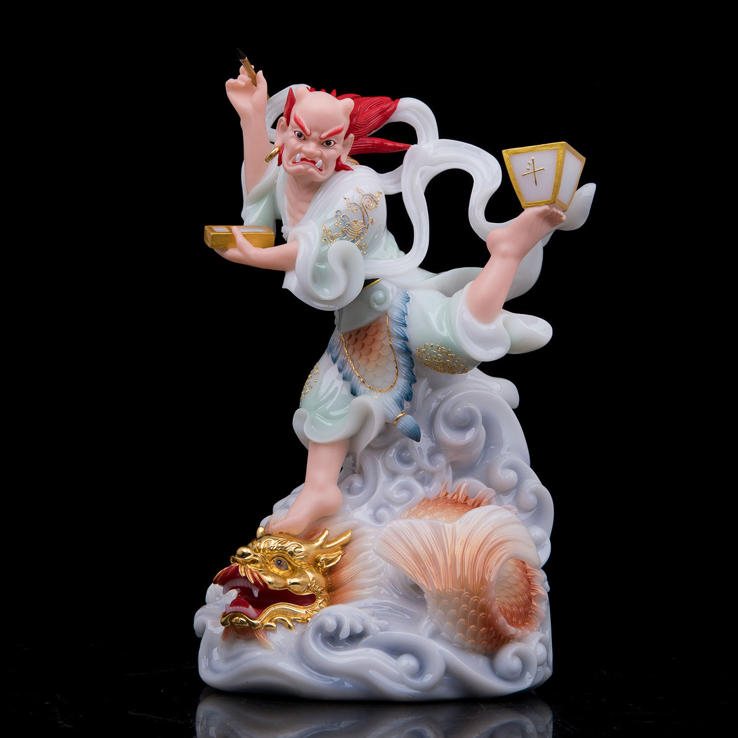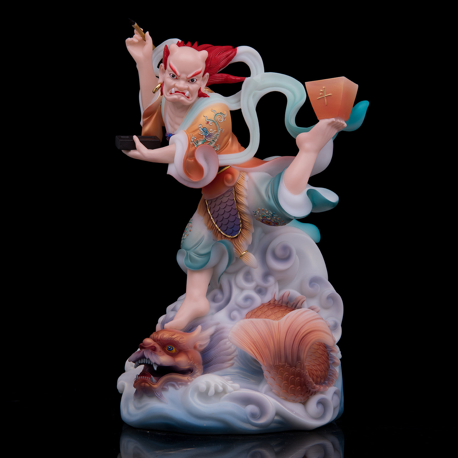 📚 魁星点斗摆件魁星踢斗文曲星汉白玉彩绘文魁夫子神像家用书房摆件