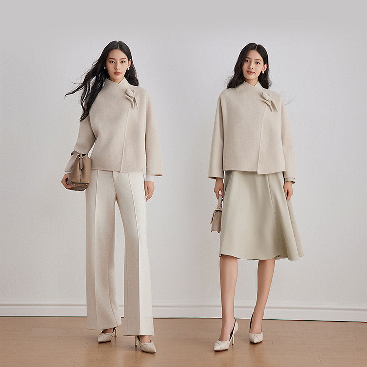 📚 羊绒驼绒OBEG欧碧倩冬设计感羊毛双面呢大衣女短外套50504504