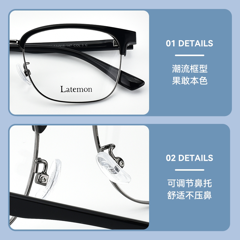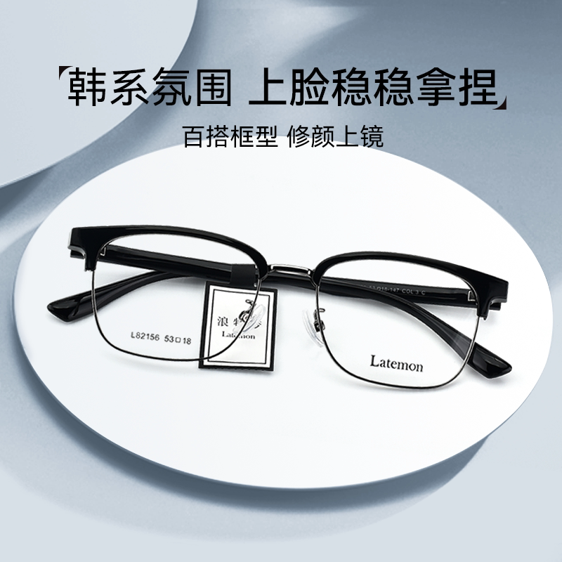 📚 Latemon浪特梦光学眼镜框男时尚气质黑色眉线框素颜镜架女配度数