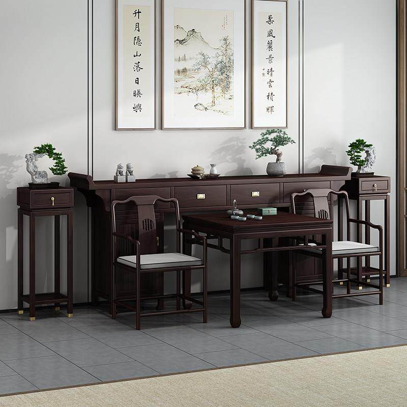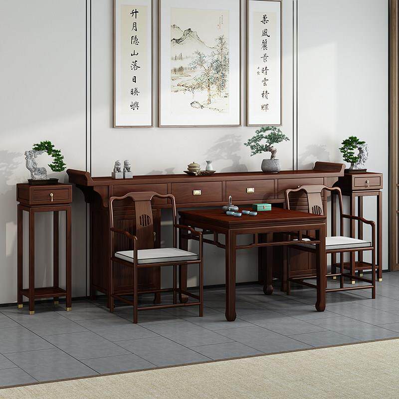 📚 新中式实木中堂六件套香火桌家用供桌条案农村案台长条桌八仙桌神