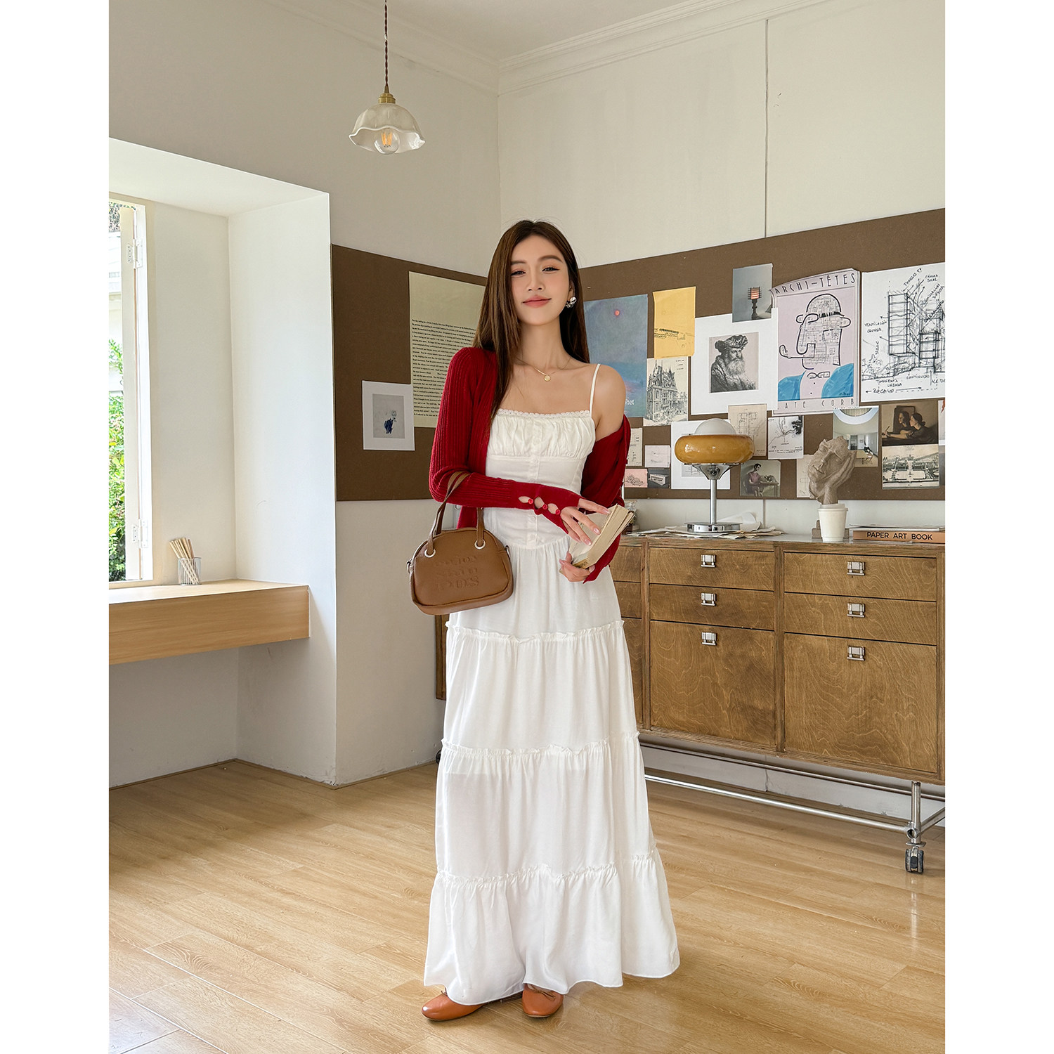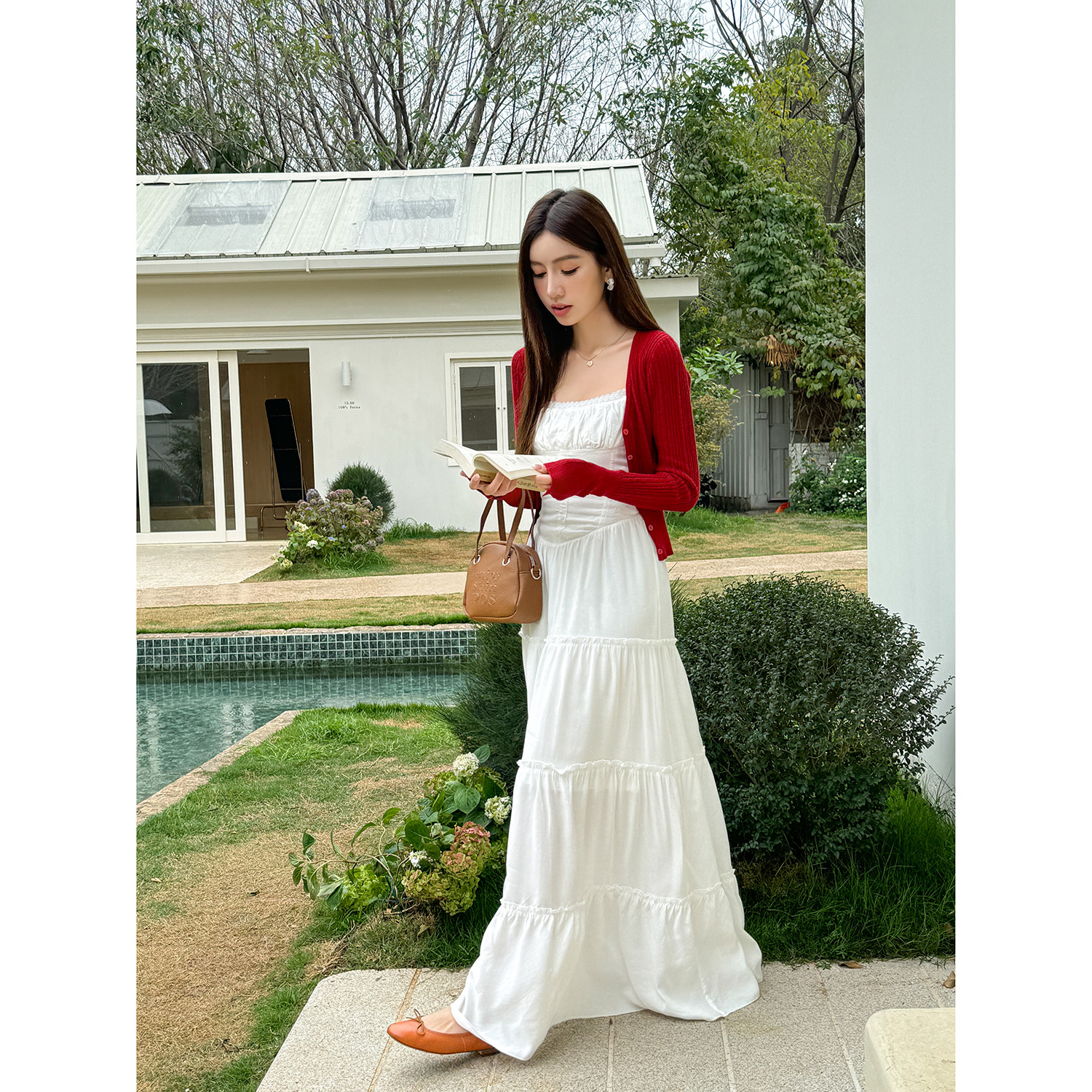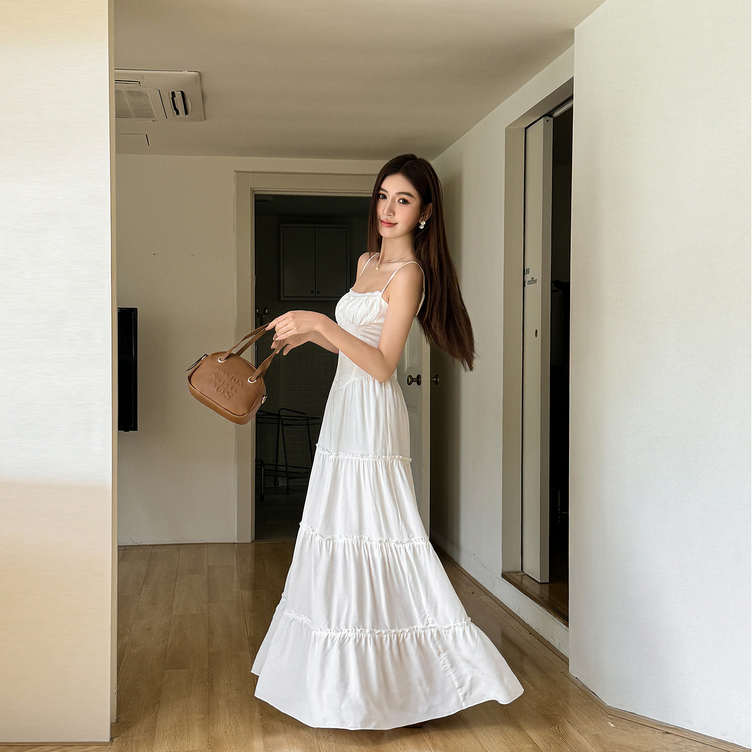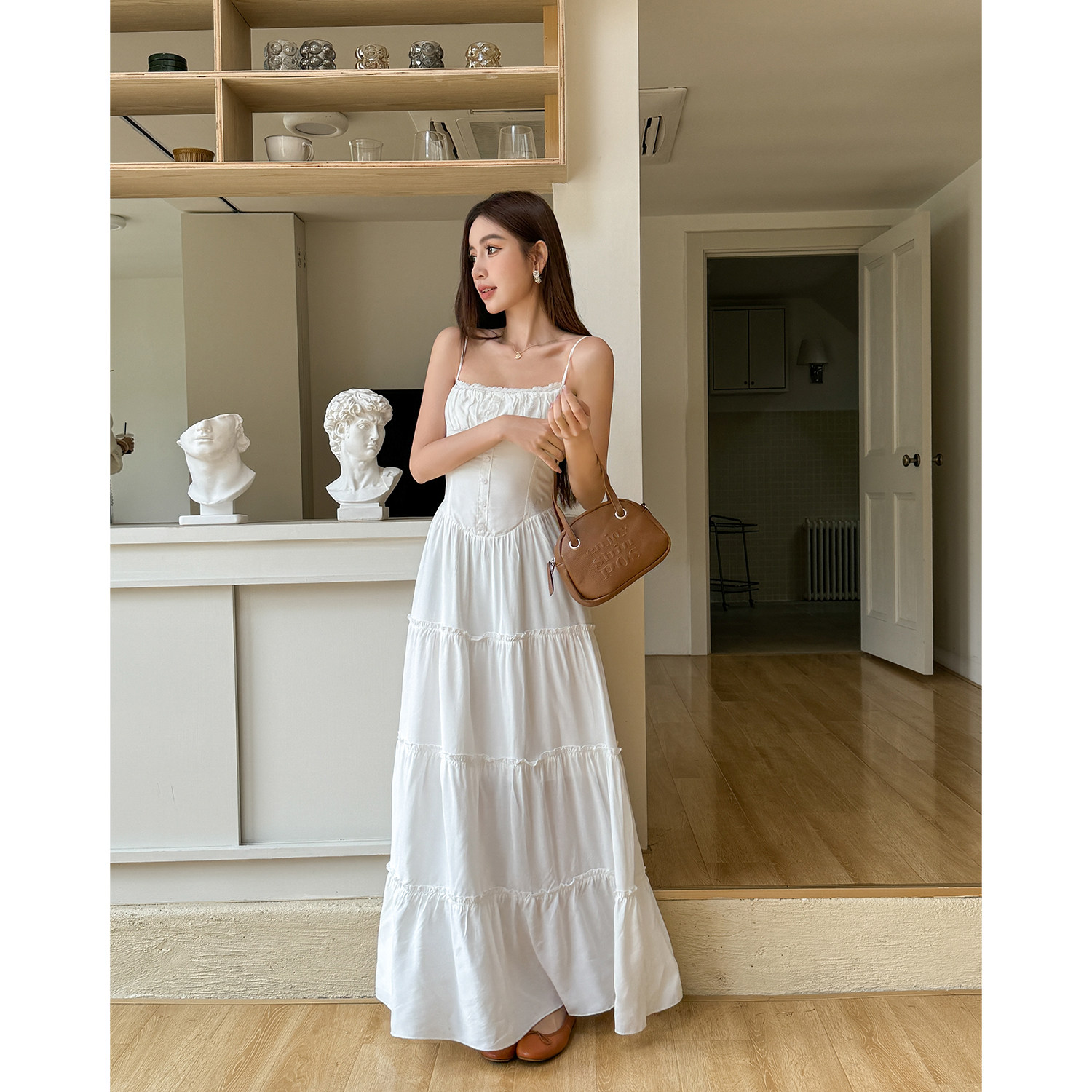 📚 浅布调 美式复古白色吊带连衣裙女夏季新款裙子修身显瘦度假长裙