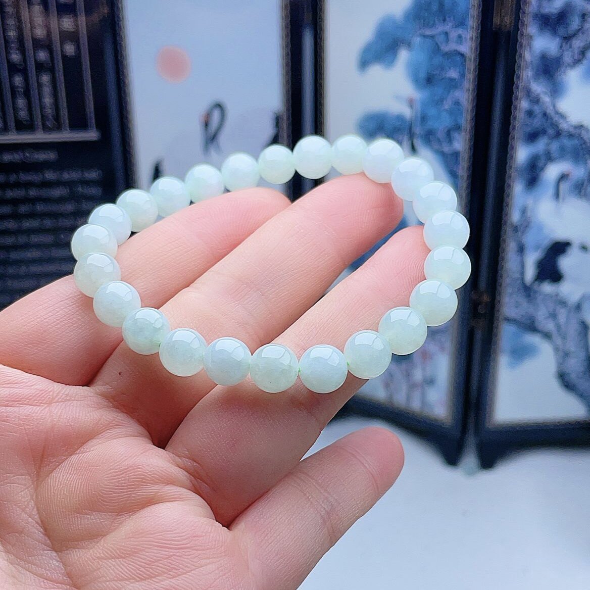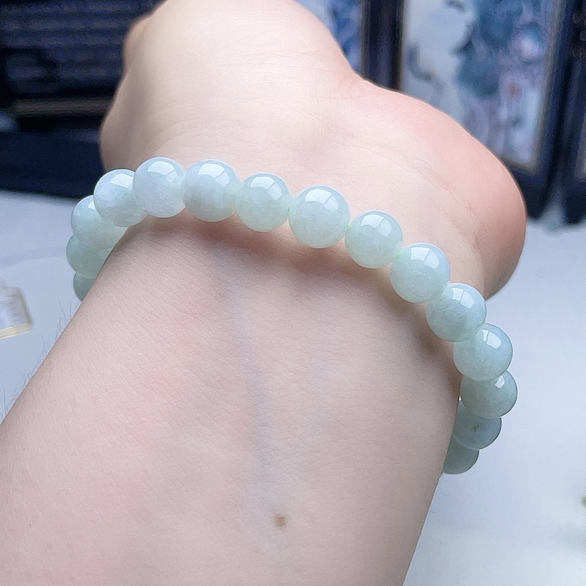 📚 晴水翡翠手链缅甸天然A货淡绿转运圆珠手串秀气8mm浅绿入财玉珠串