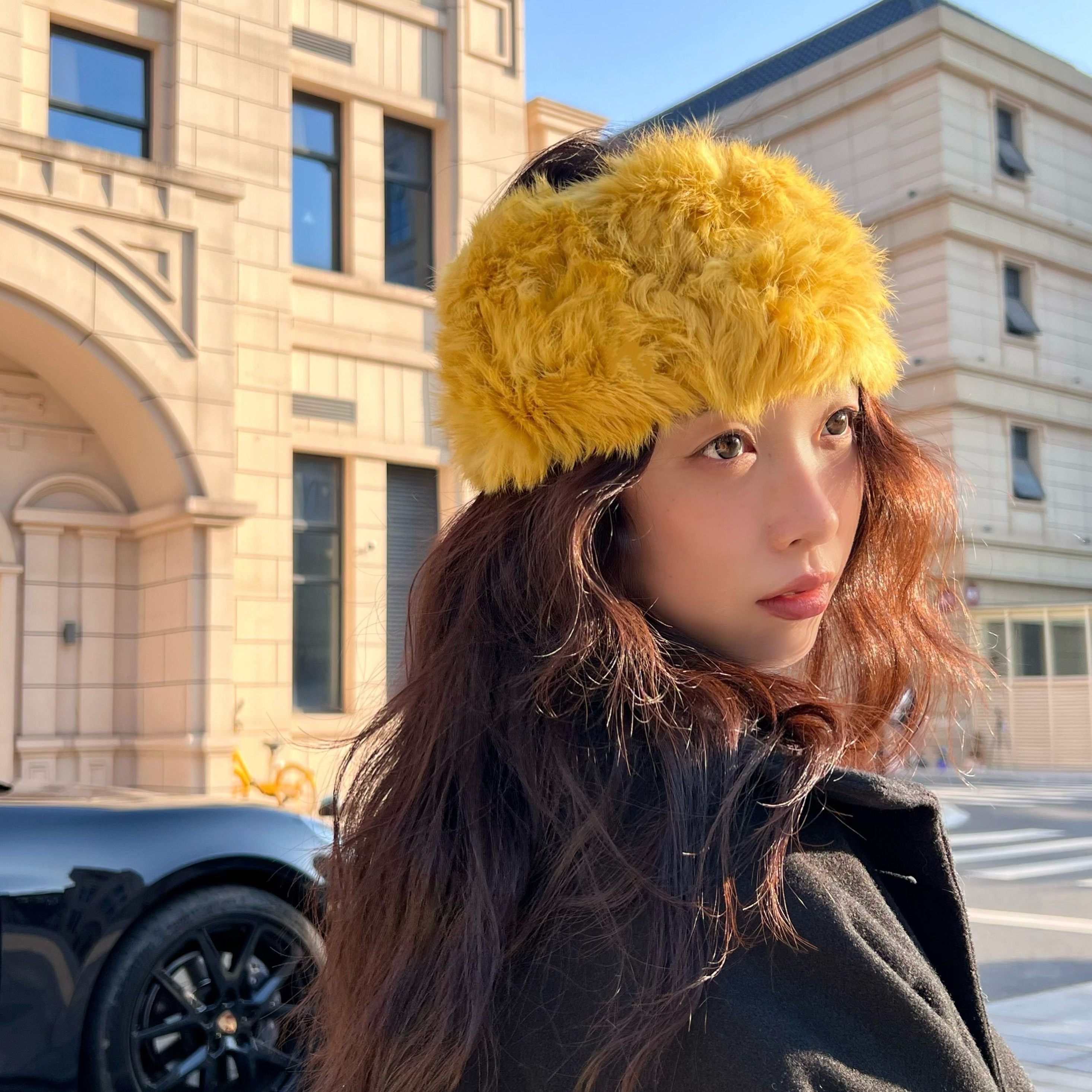 📚 康桥日落~定制vintage古着感姜黄色獭兔毛编织发带保暖皮草发箍