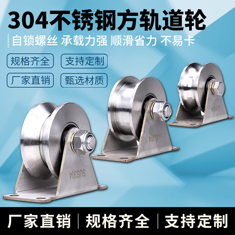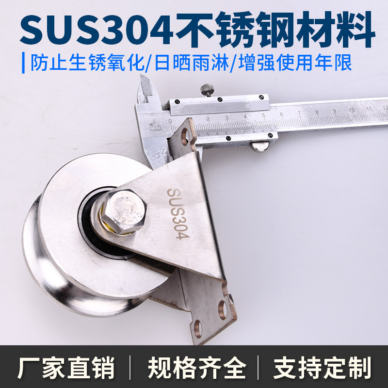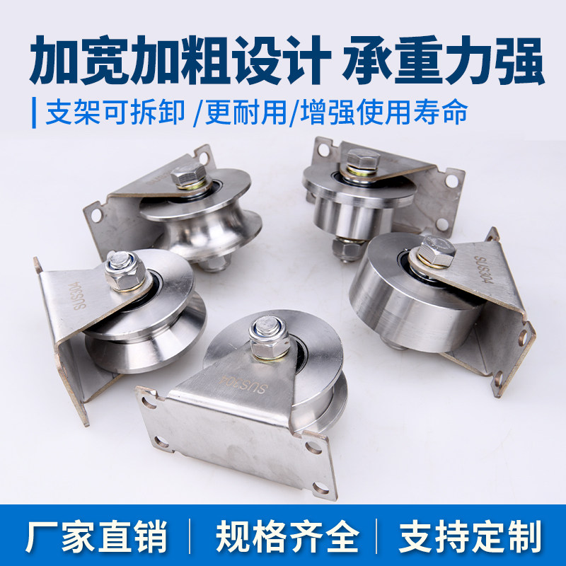 📚 304不锈钢滑轮/V型角铁轨道轮/圆管钢丝绳槽轮/工字钢铁门轮吊轮