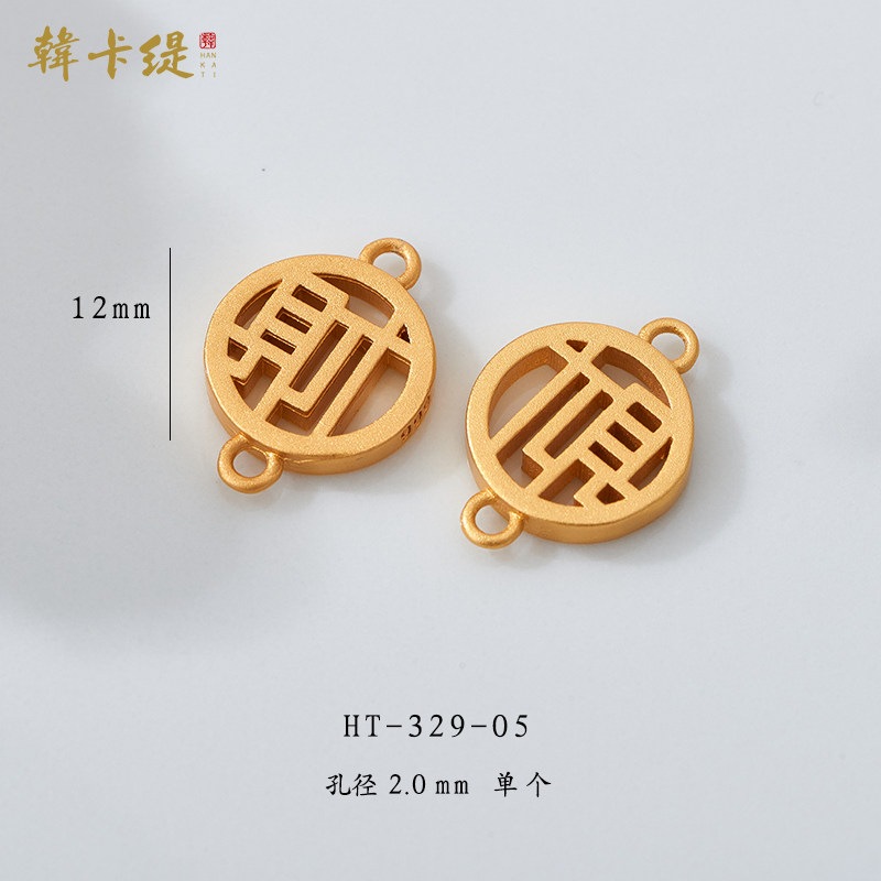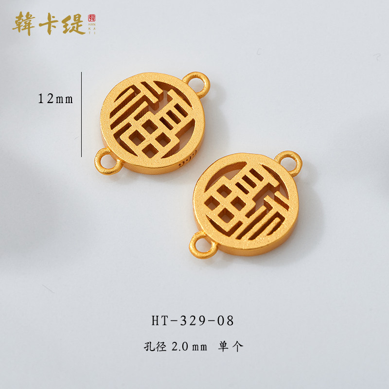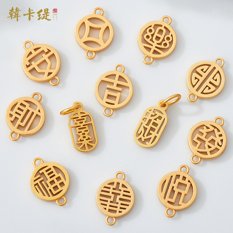 📚 古法沙金上下孔链接镂空文字隔珠吊坠手链福财喜乐发吉禄红绳配饰