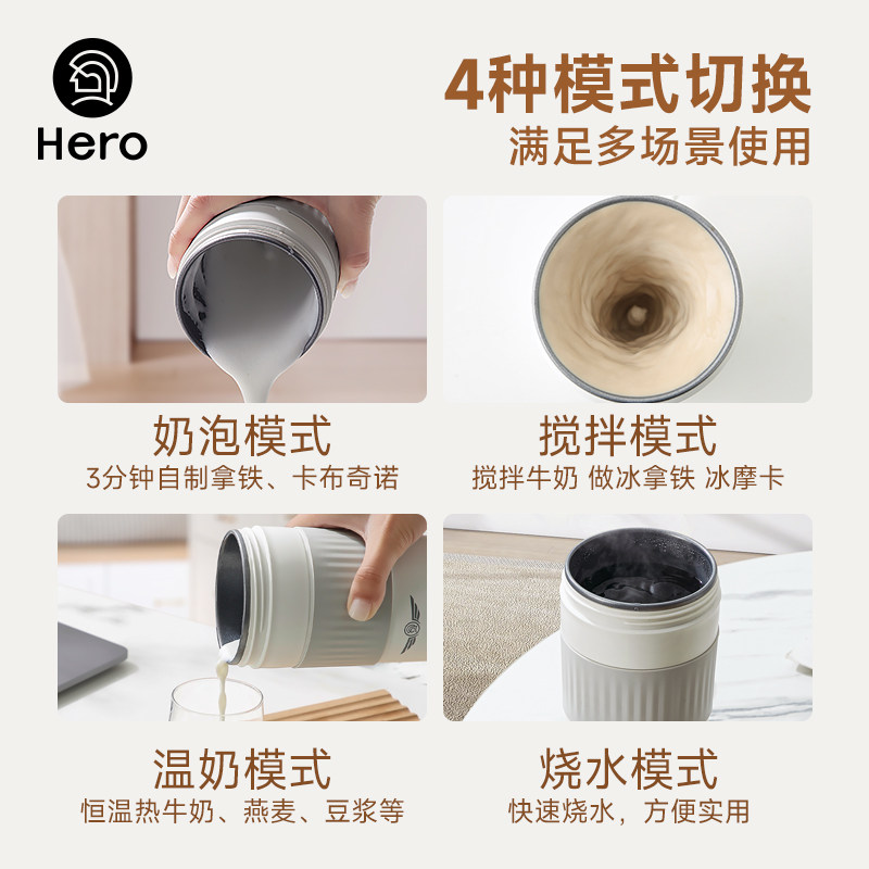 📚 Hero小艺smart电动奶泡机自动加热咖啡温奶杯小型家用拉花奶泡杯