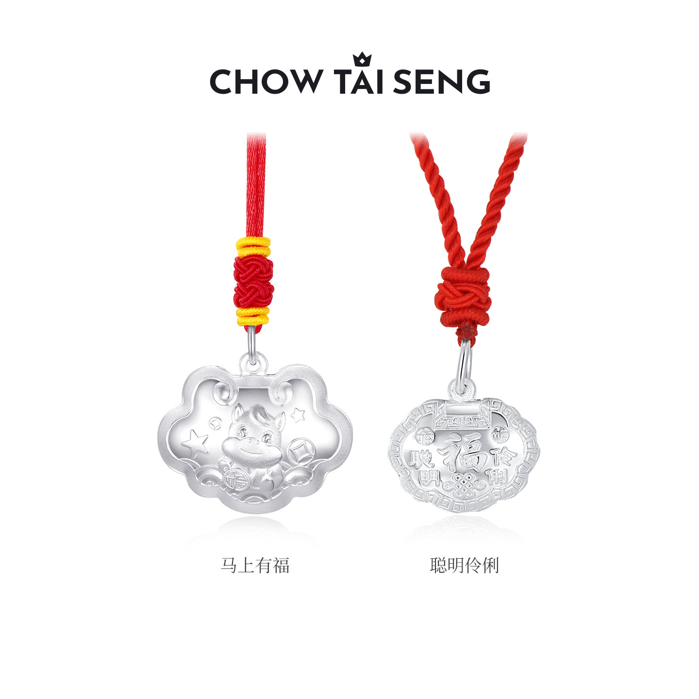 📚 周大生S990足银平安长命锁宝宝吊坠款婴儿带编绳颈饰项链节日礼物