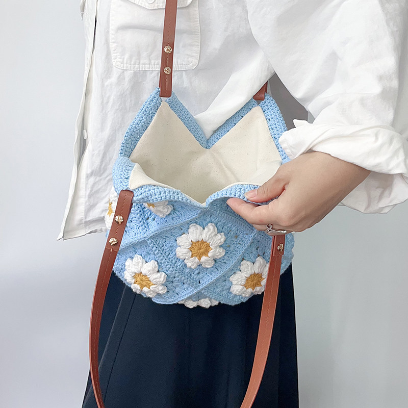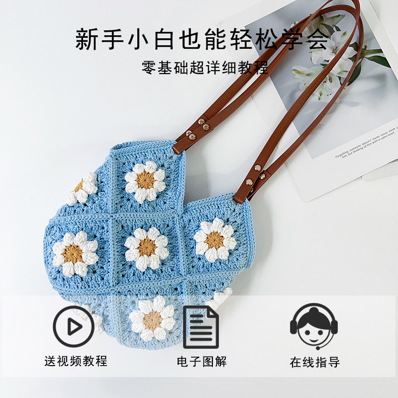📚 Mcroche魔织手工毛线diy钩织材料包单肩雏菊祖母格包包毛线编织