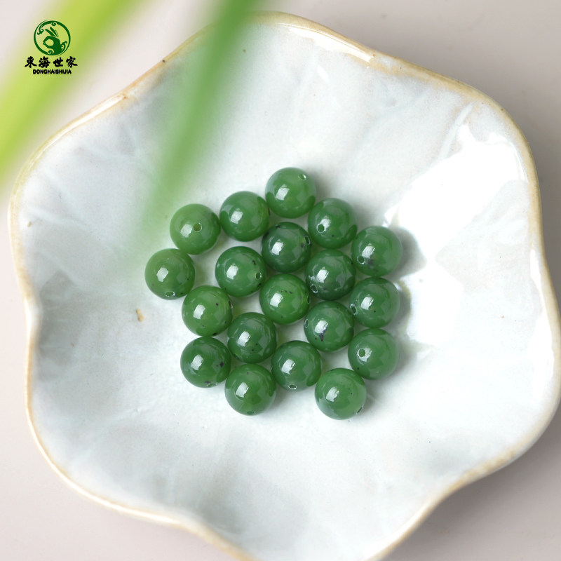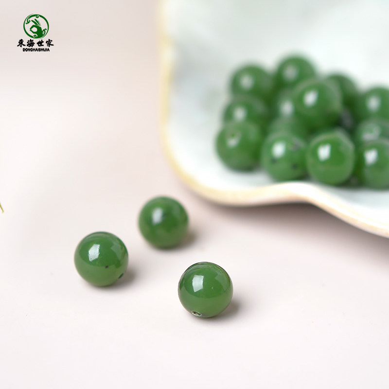 📚 和田玉散珠女男东海水晶玛瑙玉髓翡翠玉石手链串diy单珠碧玉珠子