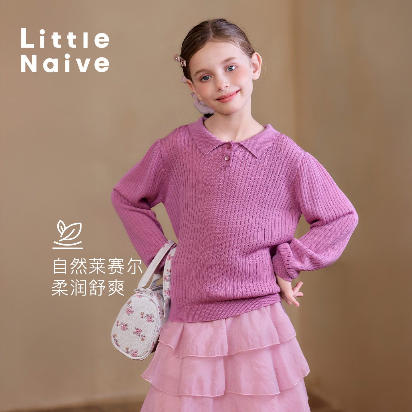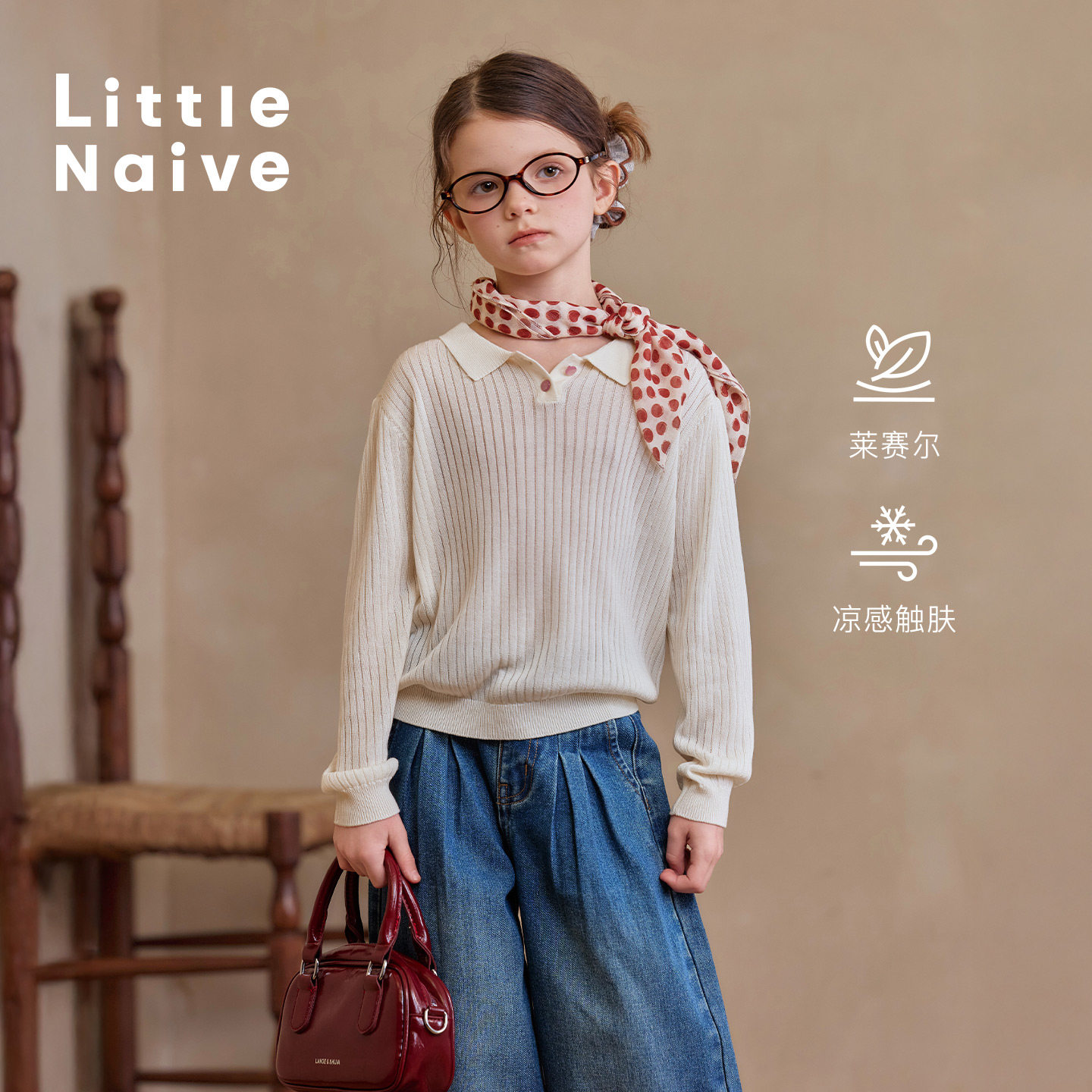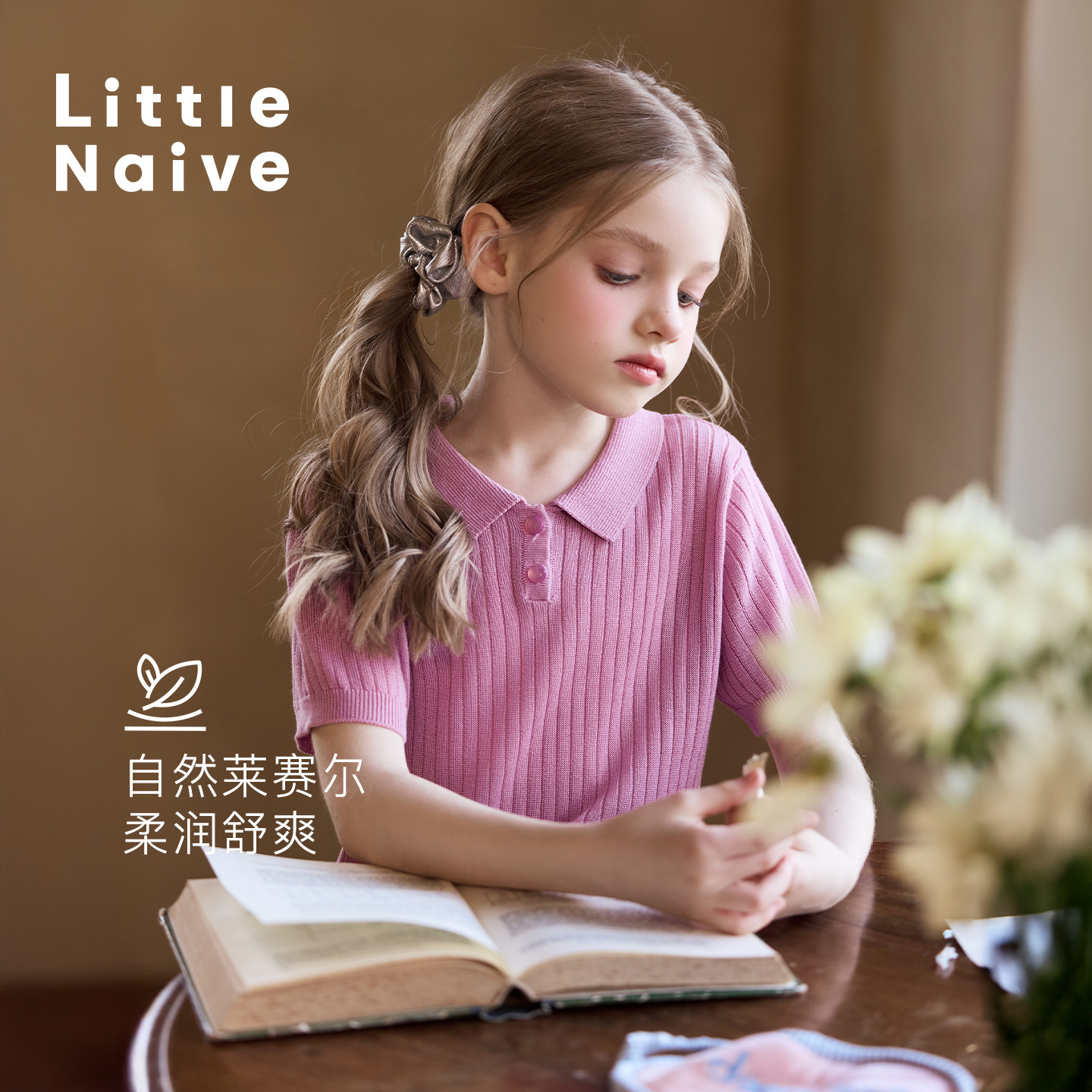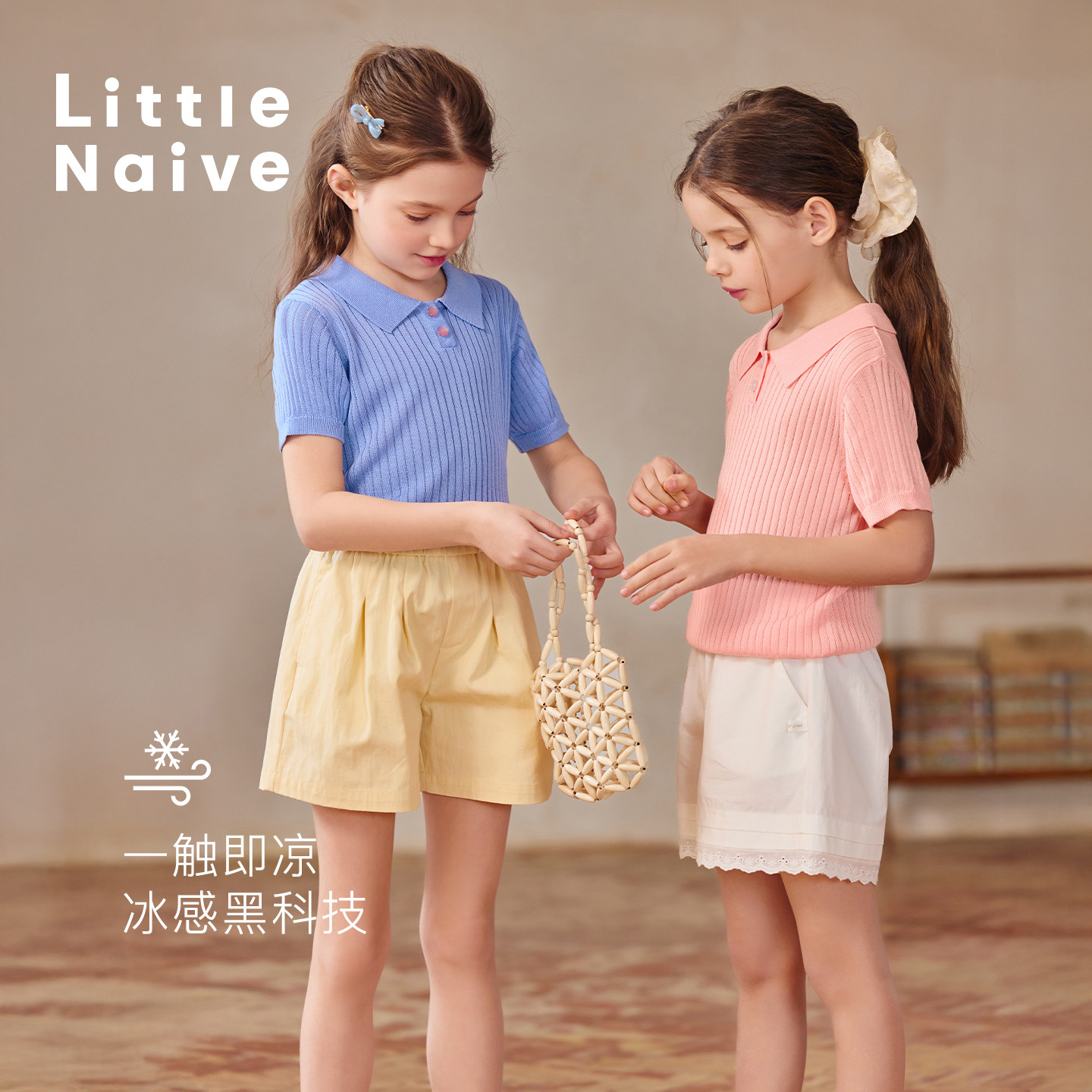 📚 Little Naive女童针织t恤春夏弹力凉感上衣儿童甜美翻领Polo短袖