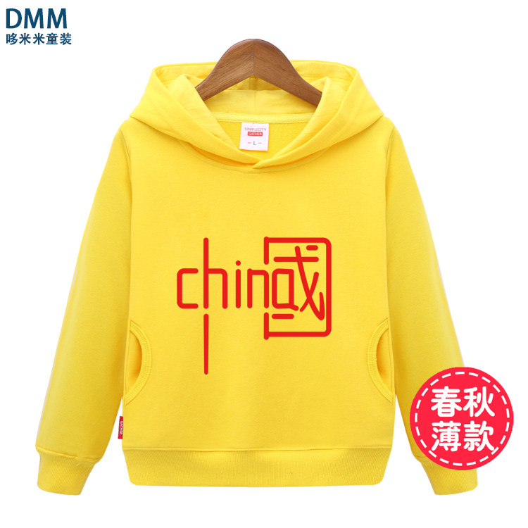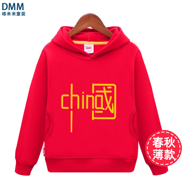 📚 男童带帽红色卫衣春秋薄款中大童儿童国潮中国风童装秋装纯棉上衣