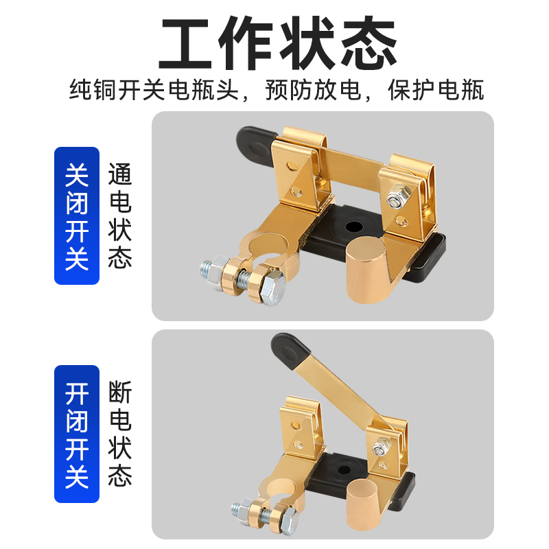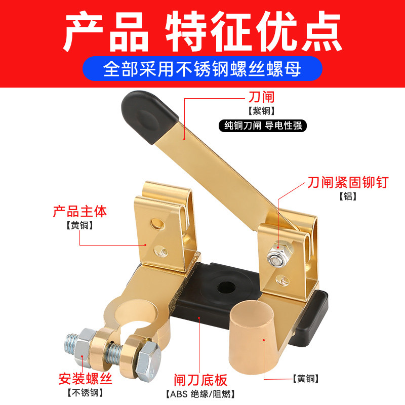 📚 汽车电瓶断电开关纯铜正负极通用防漏闸刀开关防漏电改装黄铜总闸