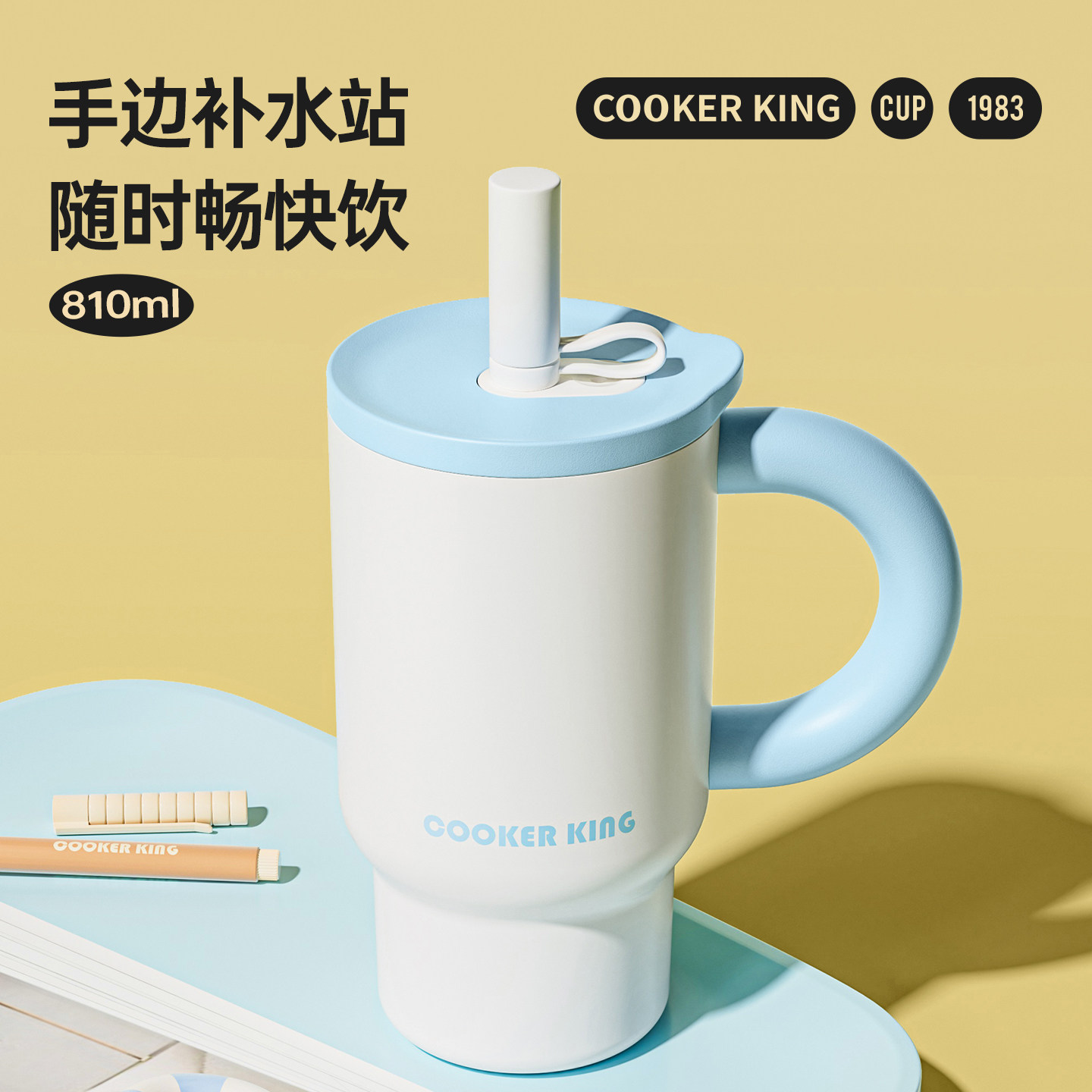 💥夏日必入手!炊大皇大容量吸管保温杯,桌面冰霸,不锈钢水杯,颜值爆表💖
