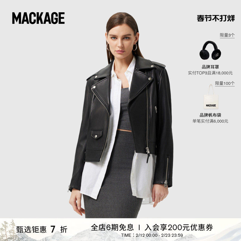 📚 MACKAGE女士 BAYA经典机车修身休闲时尚短款皮衣外套上衣情侣款
