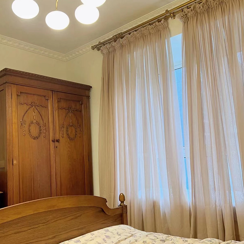 📚 日式细麻纱抽带网红风窗帘纱帘复古轻奢东南亚瑜伽馆客厅卧室定制