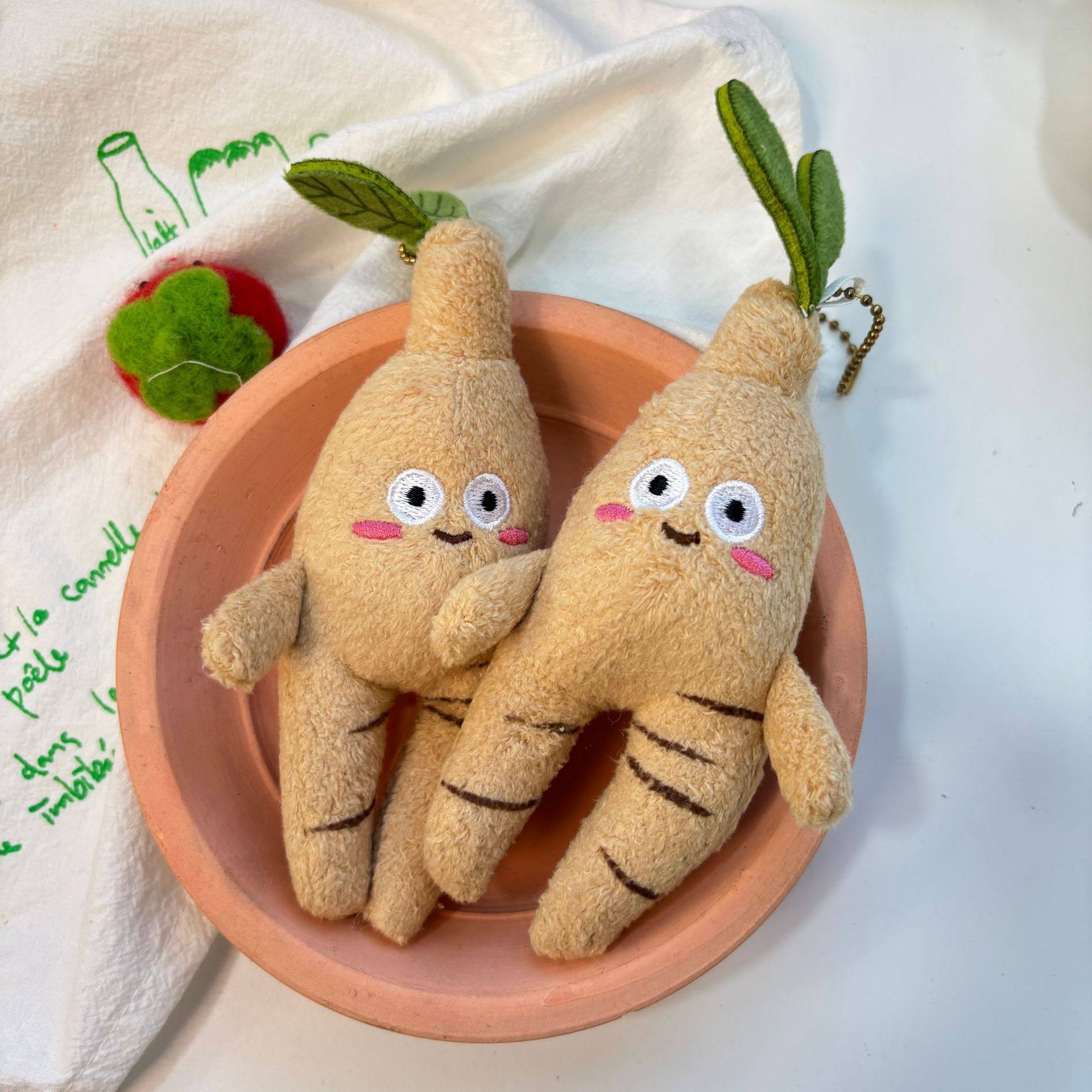 📚 现货卡通可爱中药品人参毛绒玩具包挂件钥匙扣公仔游乐城抓娃娃机