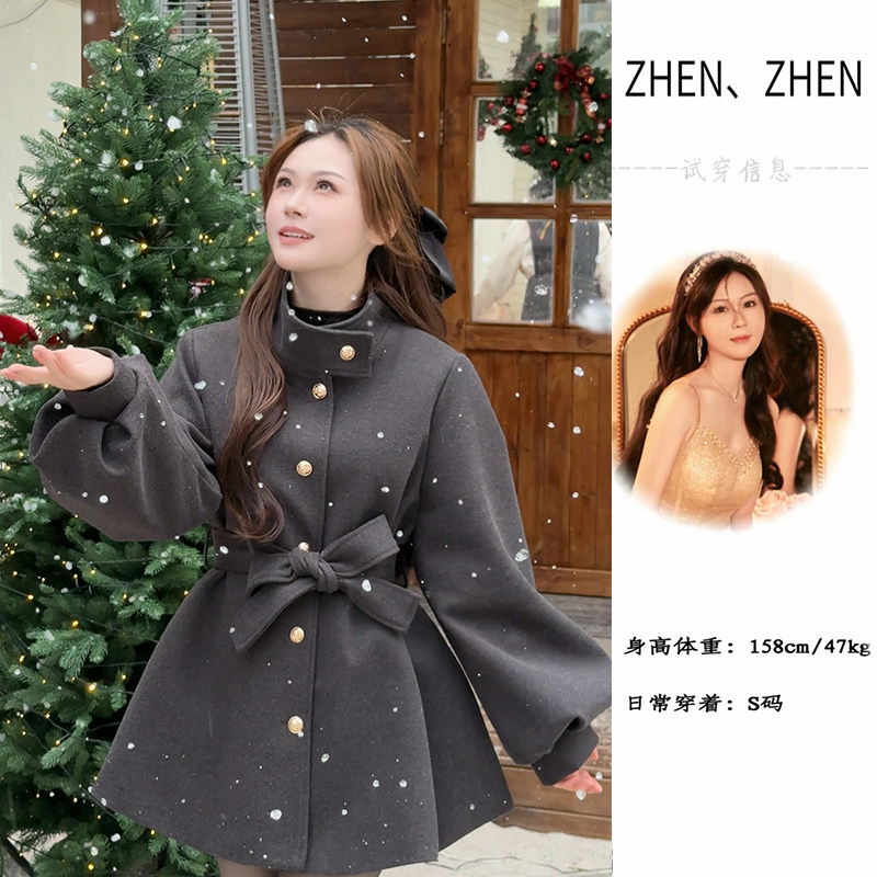 呢子毛呢立领秋冬季小个子