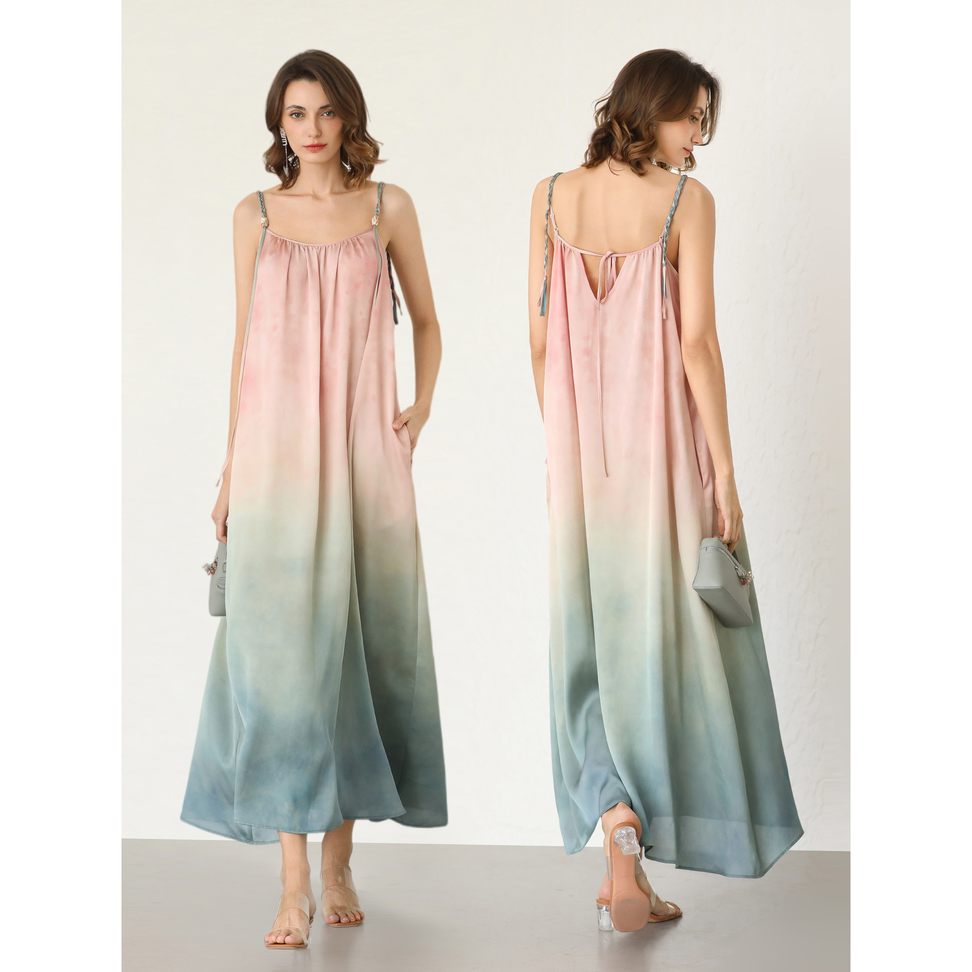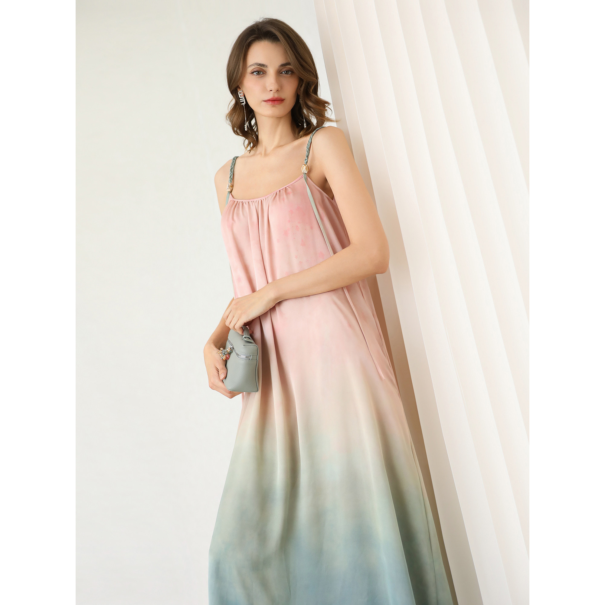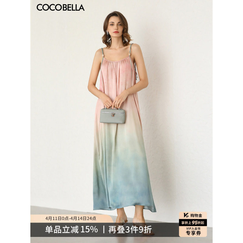 📚 COCOBELLA度假风渐变晕染吊带裙手工编织肩带连衣裙FR7057-4