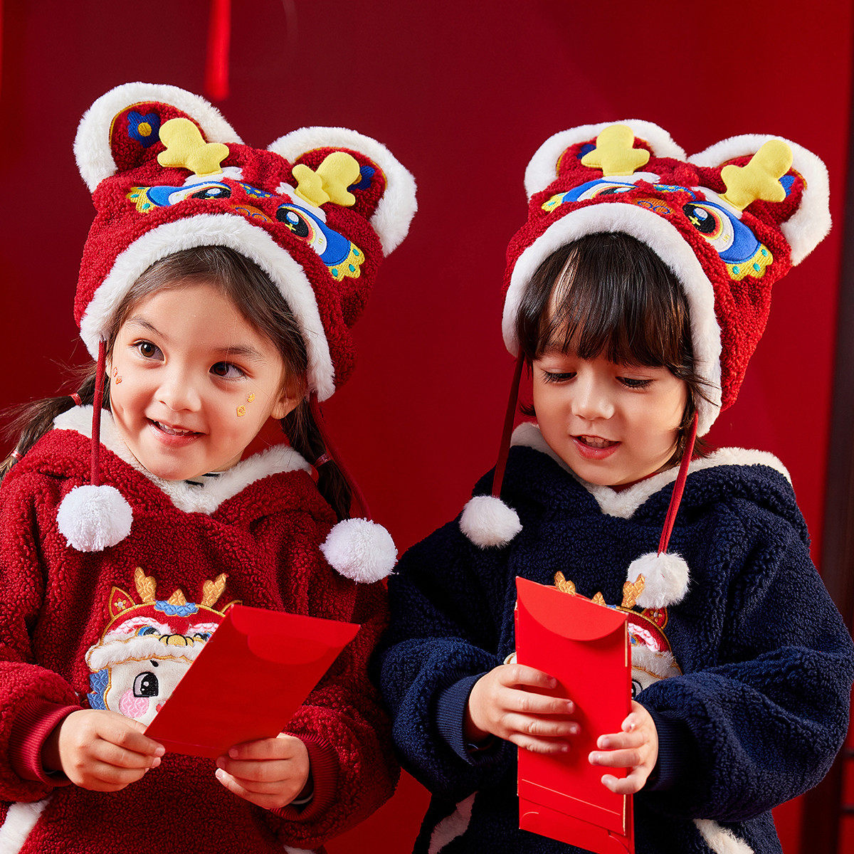 📚 宝宝红色拜年帽新年儿童周岁礼貌年装男童新年帽子冬季