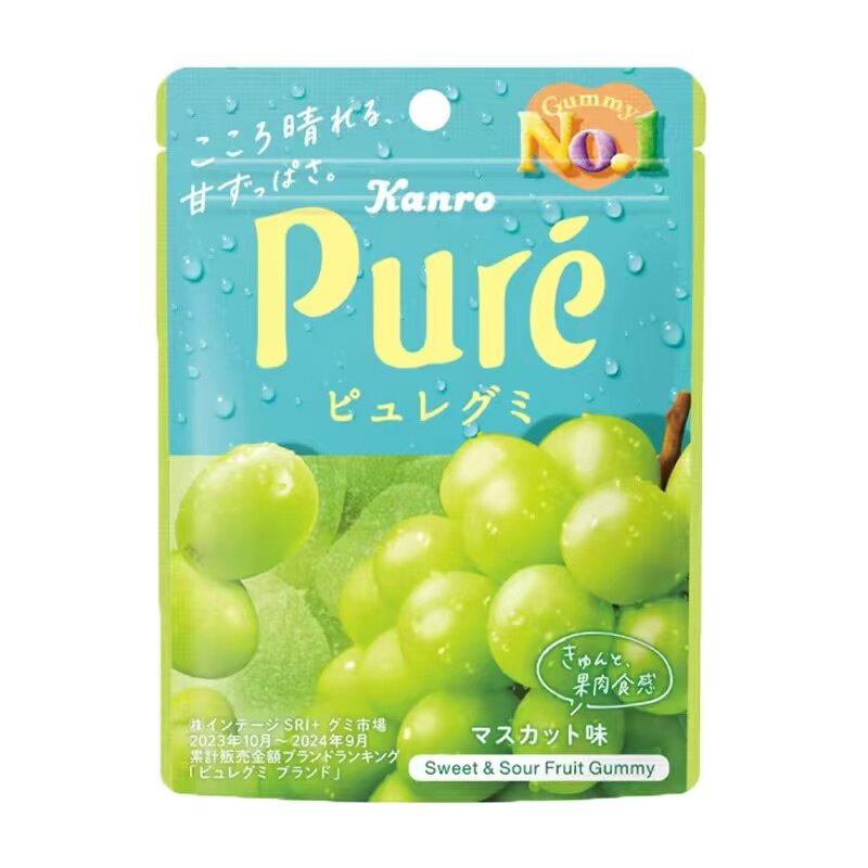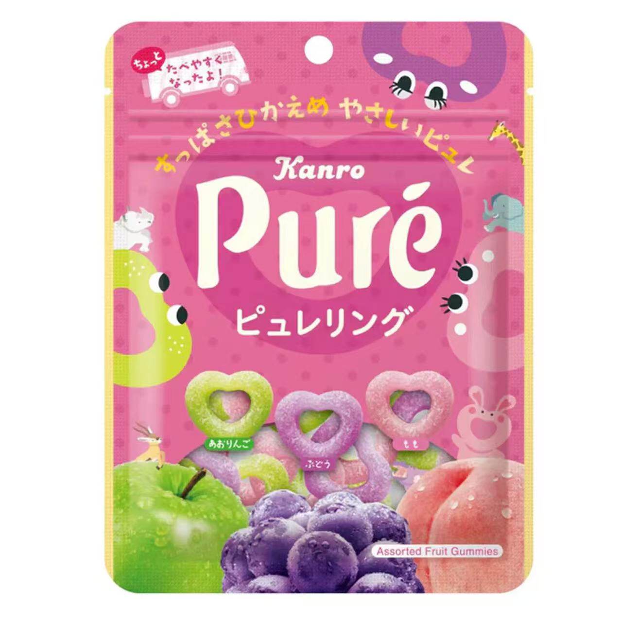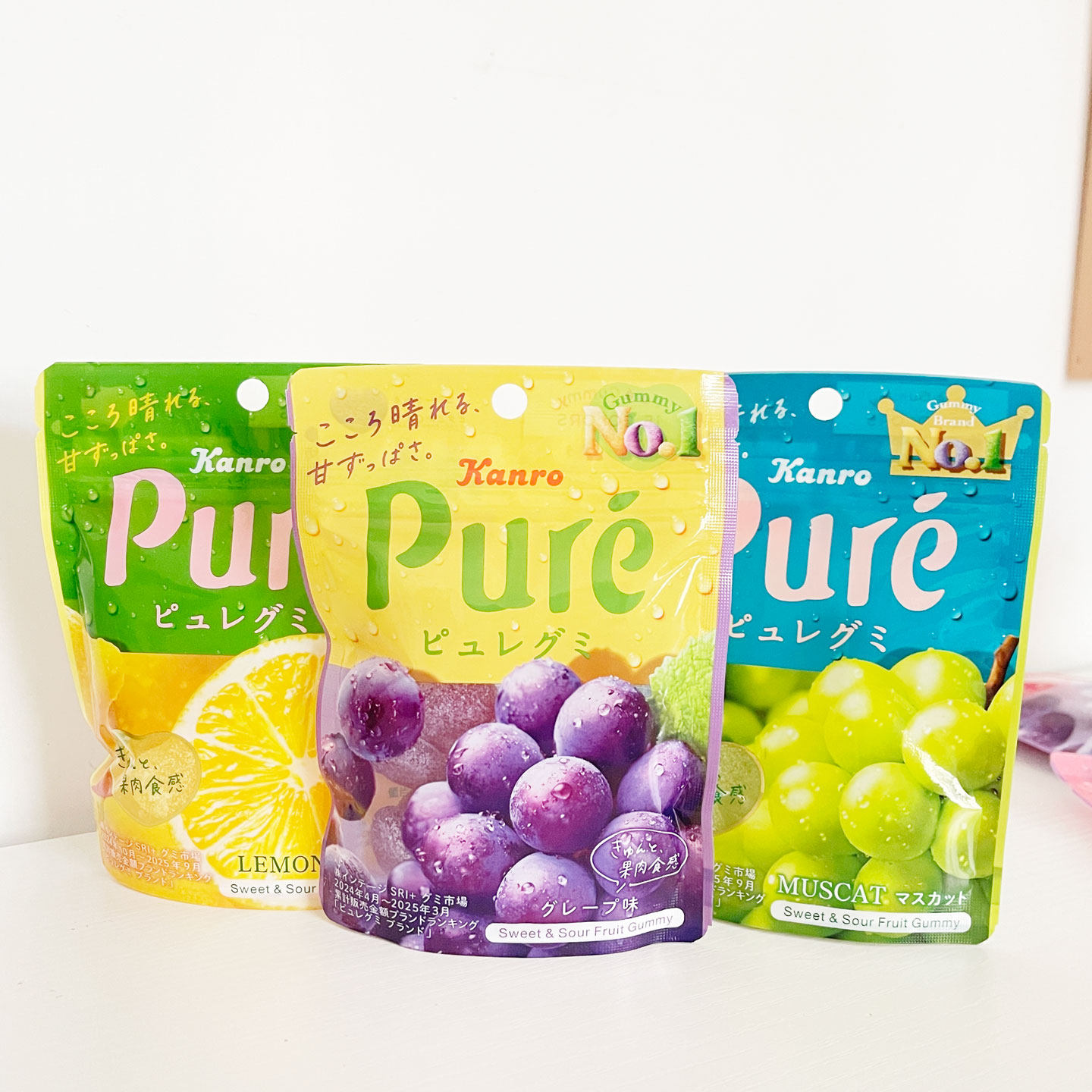 📚 日本零食甘乐pure心形果汁软糖水果夹心咀嚼弹力qq软糖葡萄柠檬味