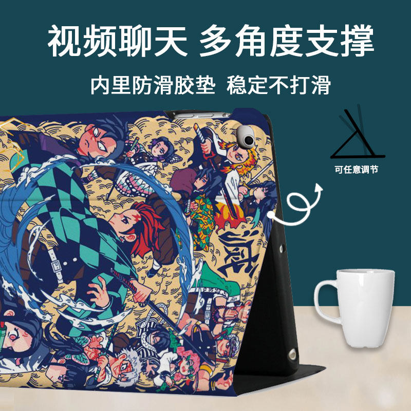 📚 鬼灭之刃合适用2020/19新款10.2寸ipad带笔槽air1/苹果平板保护套mini4皮套2021Pro11寸动漫10.5/日系潮流