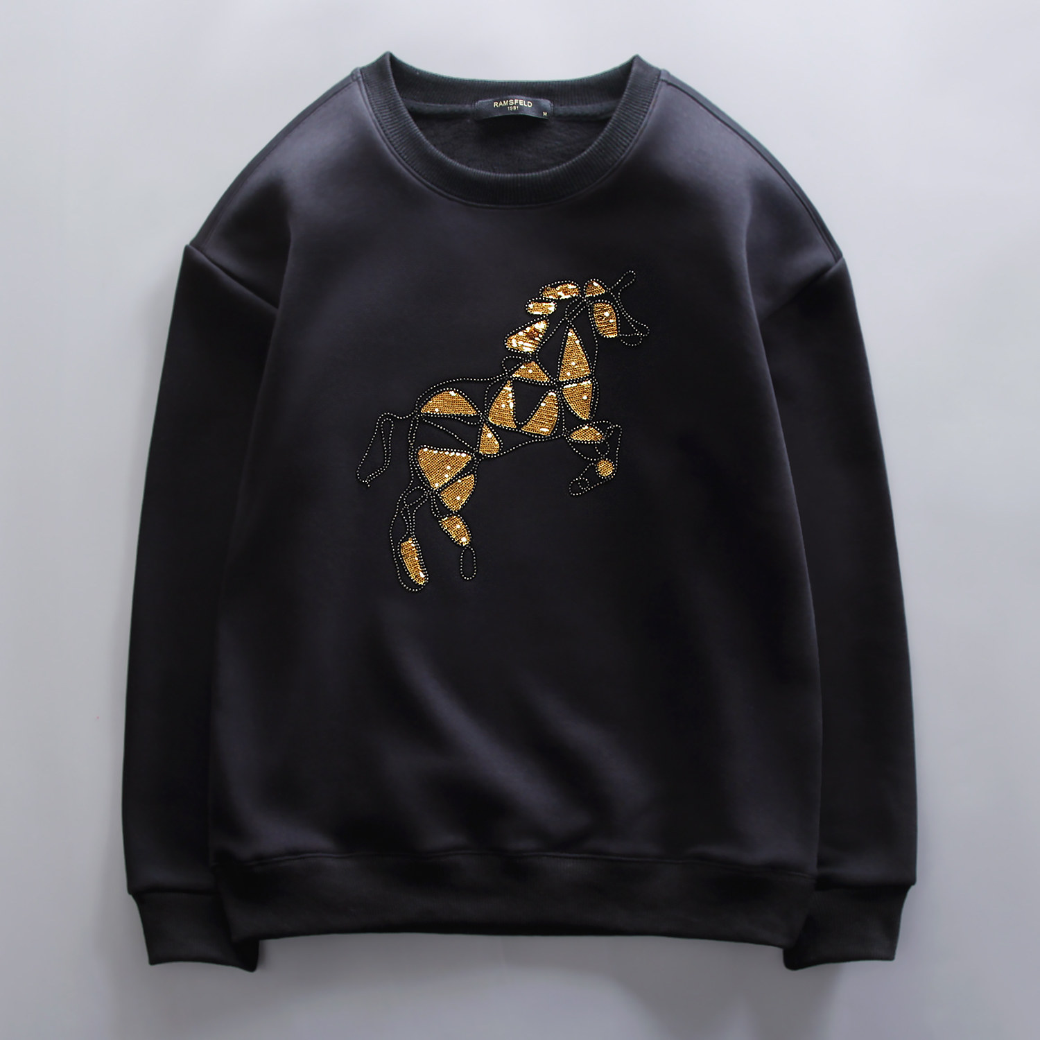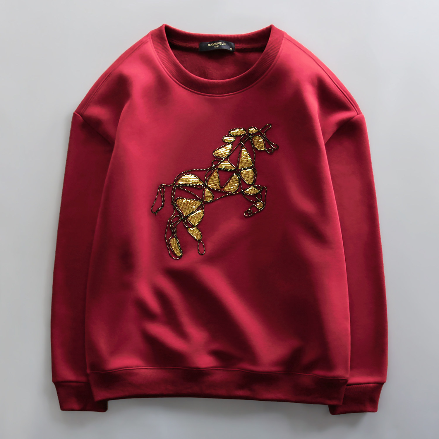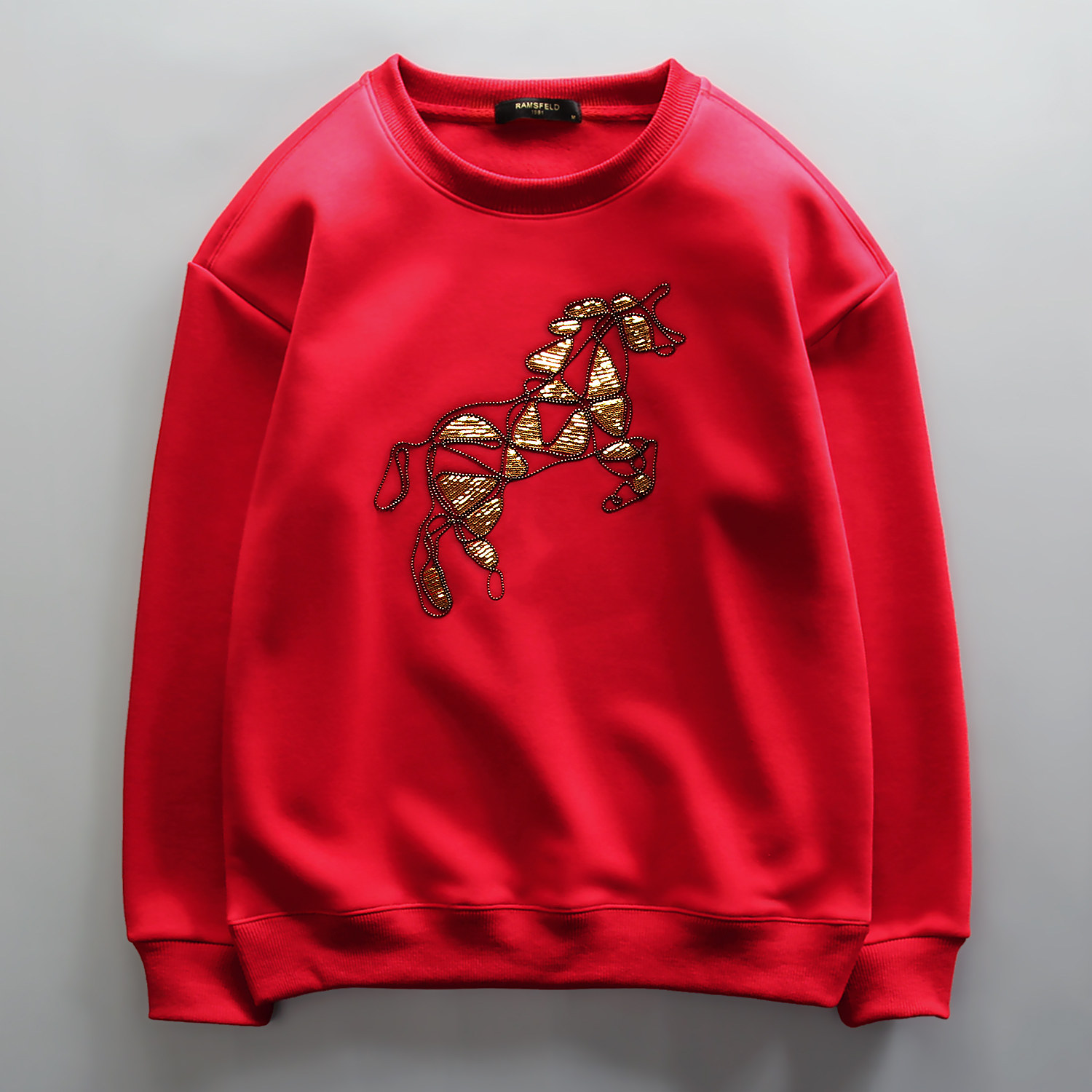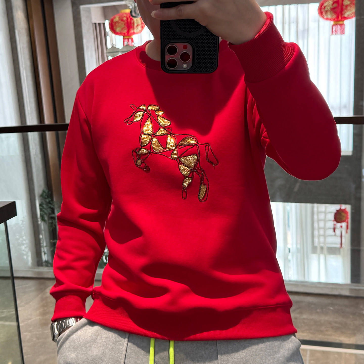 📚 2026马年新款加绒链条亮片战马刺绣卫衣本命年红色外套秋冬国潮