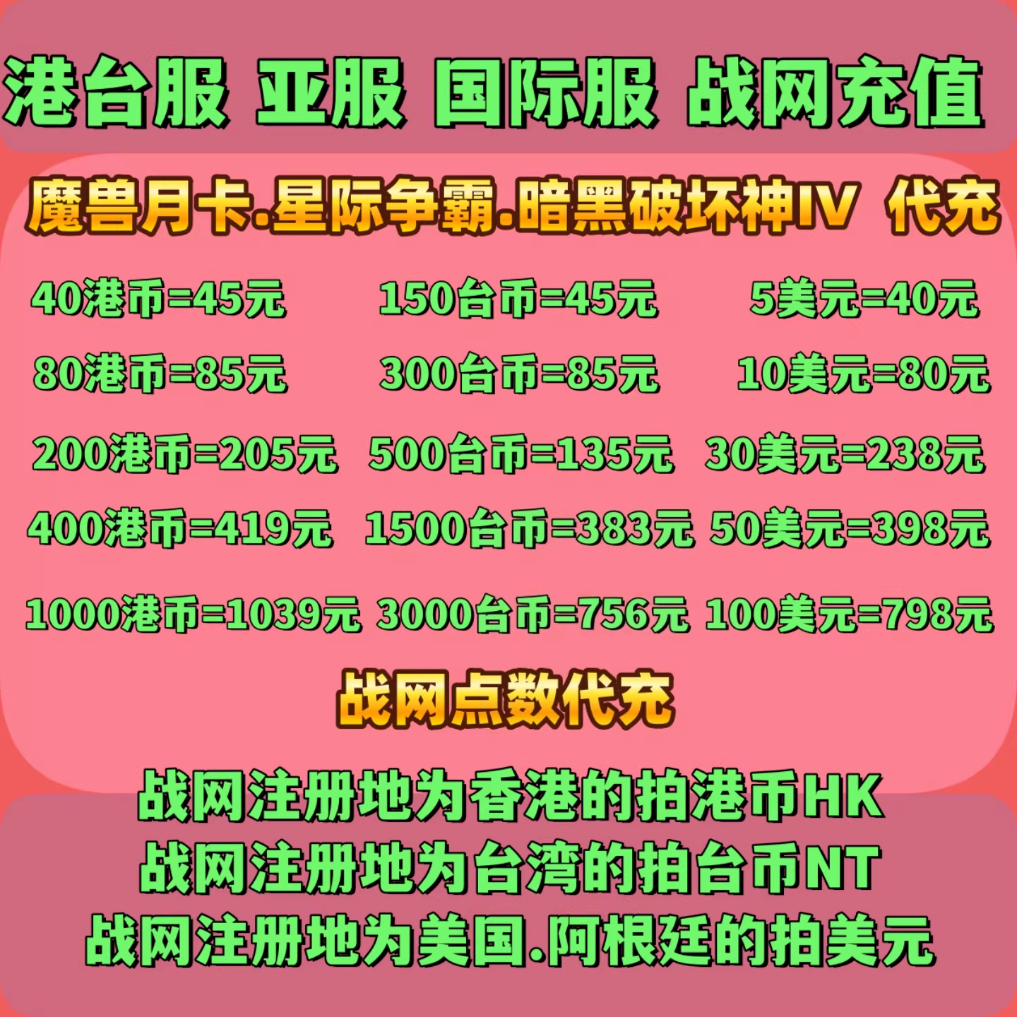📚 暴雪战网点数代充 台服港服国际服魔兽月卡星际暗黑4憎恨之王