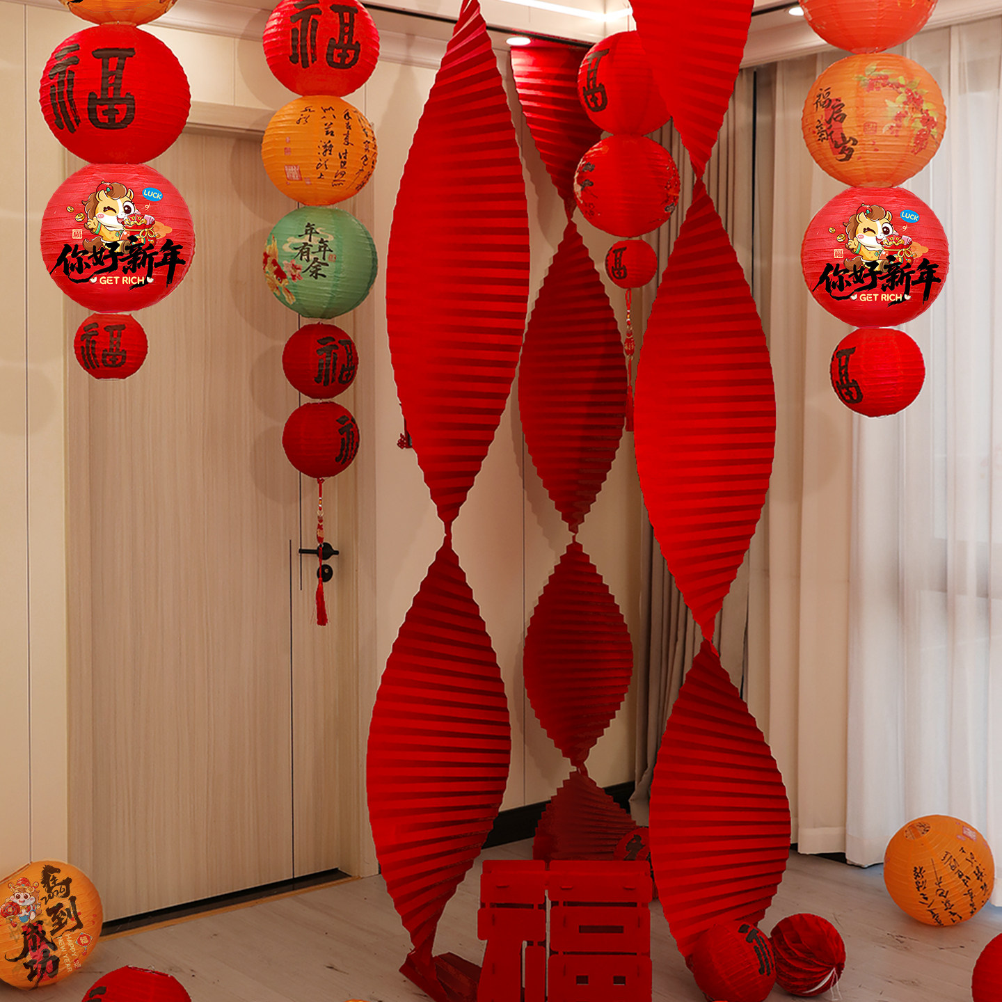 📚 新年装饰品2026马年长条福字灯笼蝴蝶拉花小挂件春节过年场景布置