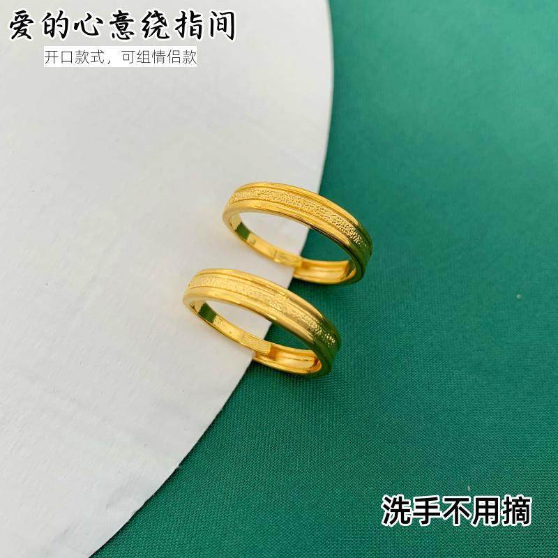 📚 越南沙金简约磨砂细戒指男女情侣对戒黄铜镀金戒指活口百搭不掉色