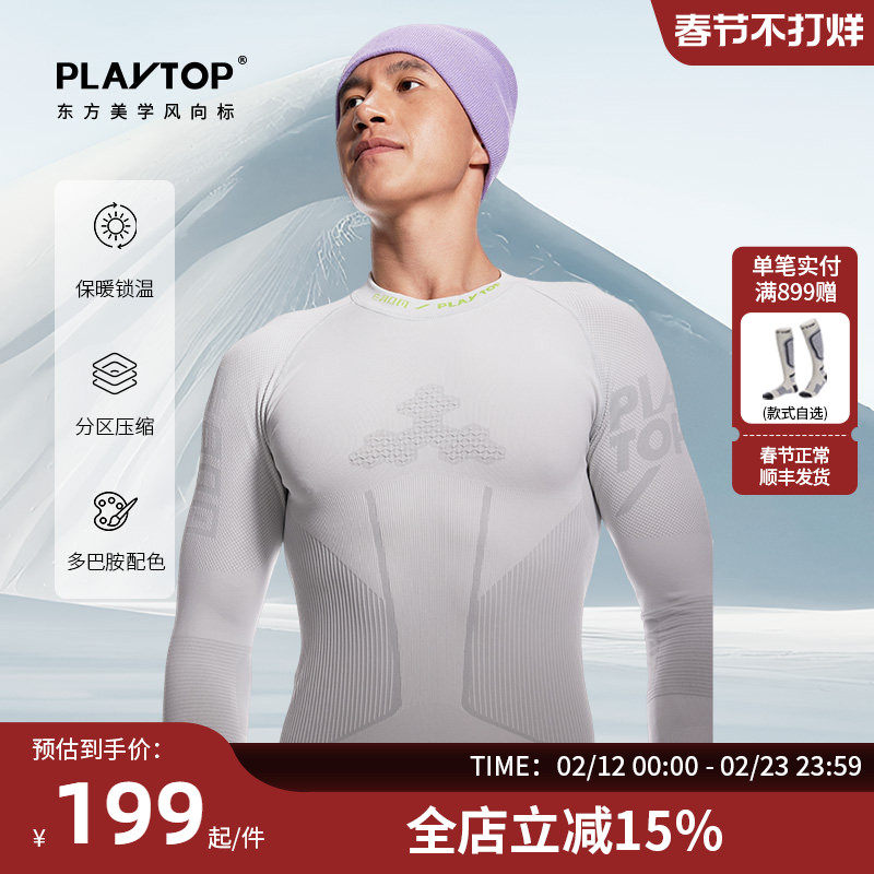 📚 PlayTop火山泥圆领滑雪速干衣排汗透气压缩跑步滑冰功能内衣男款
