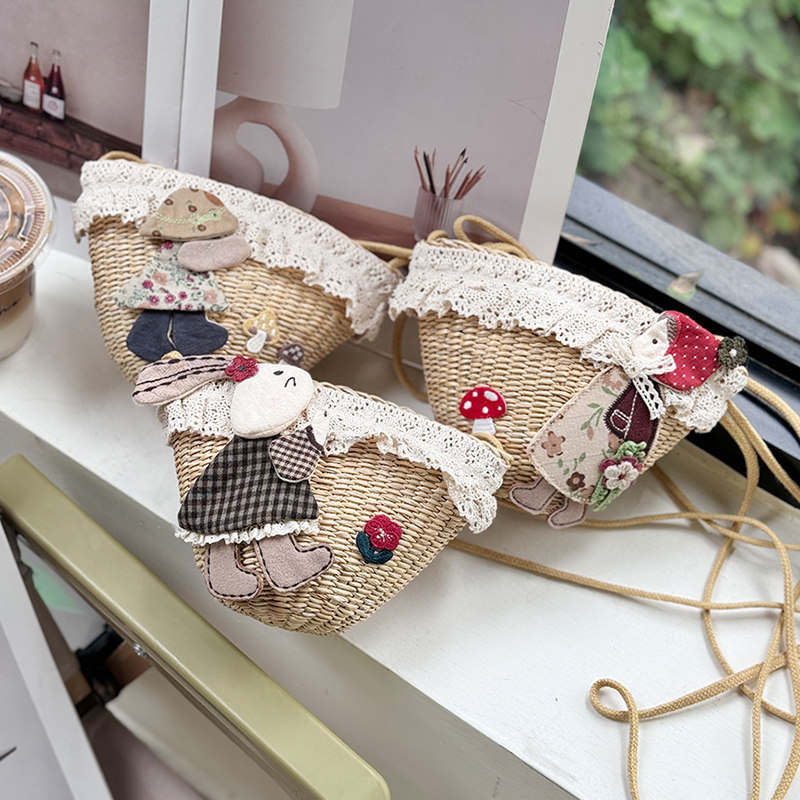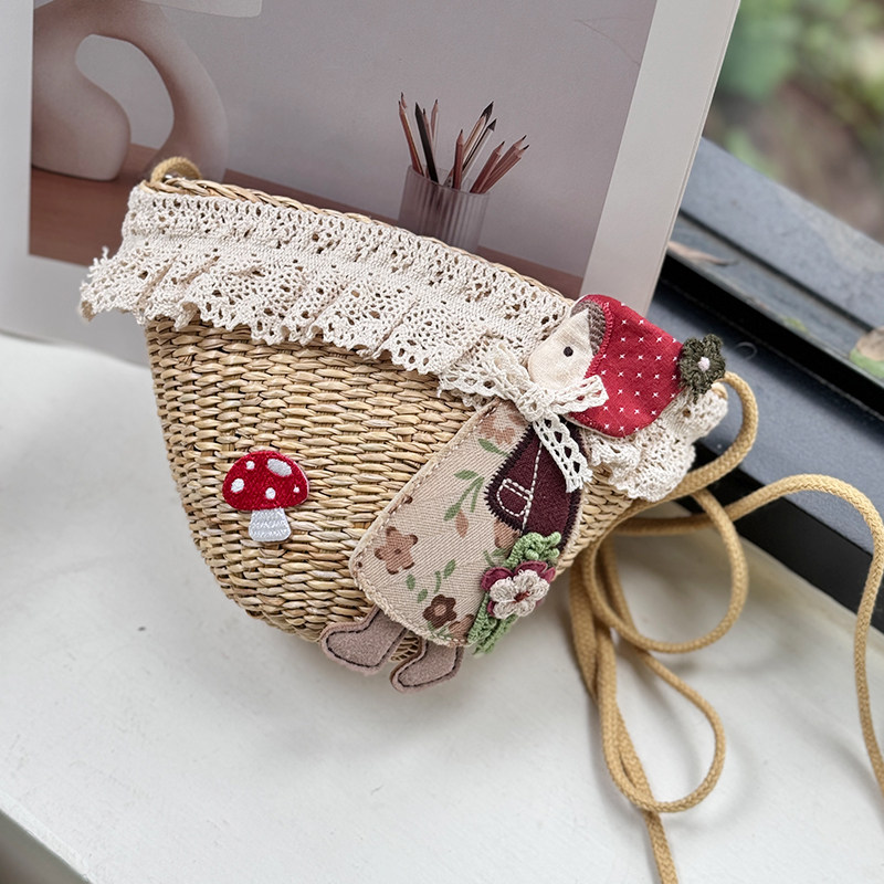 📚 2025韩版森系小红帽可爱草编包沙滩出游斜跨包春游手编宝宝手拎包