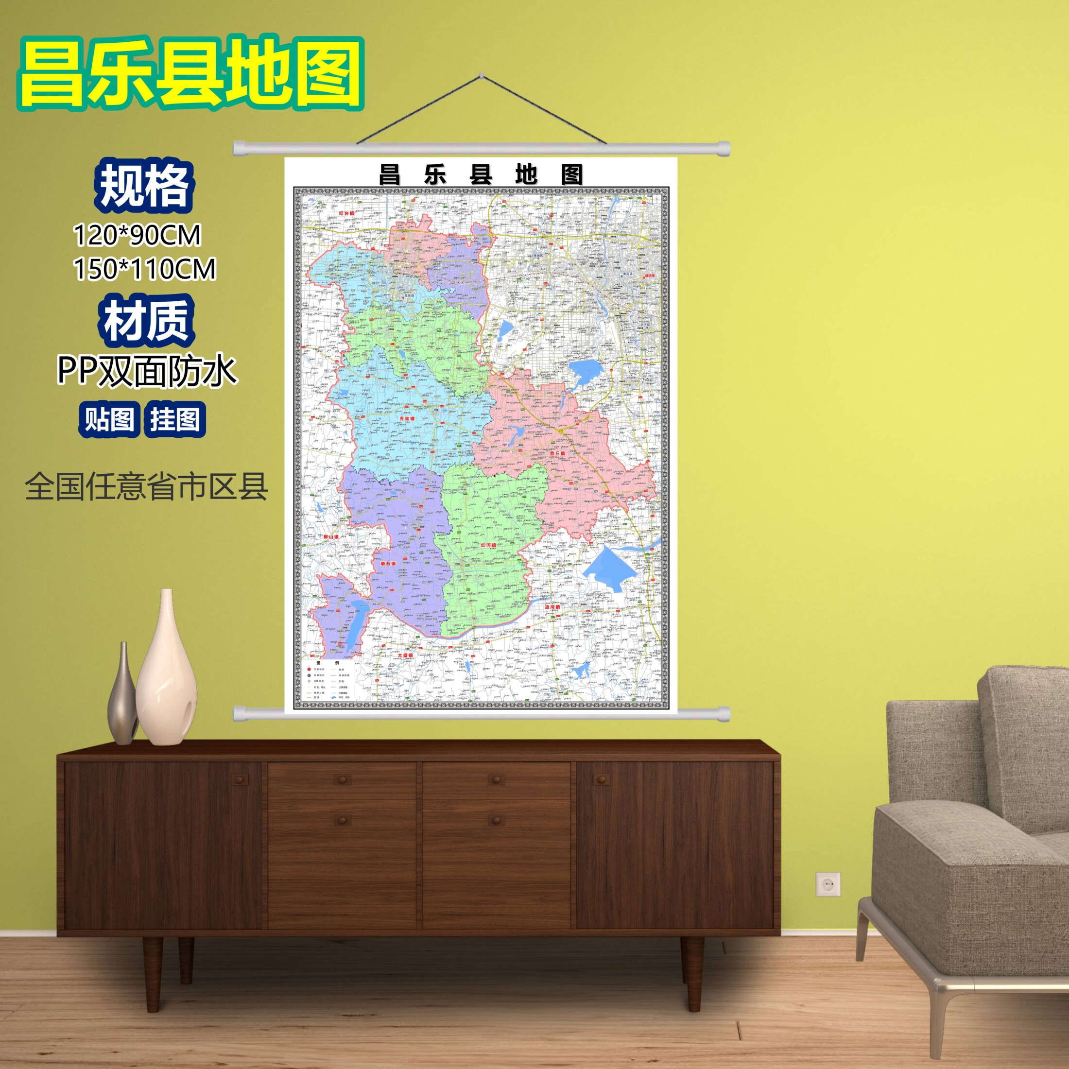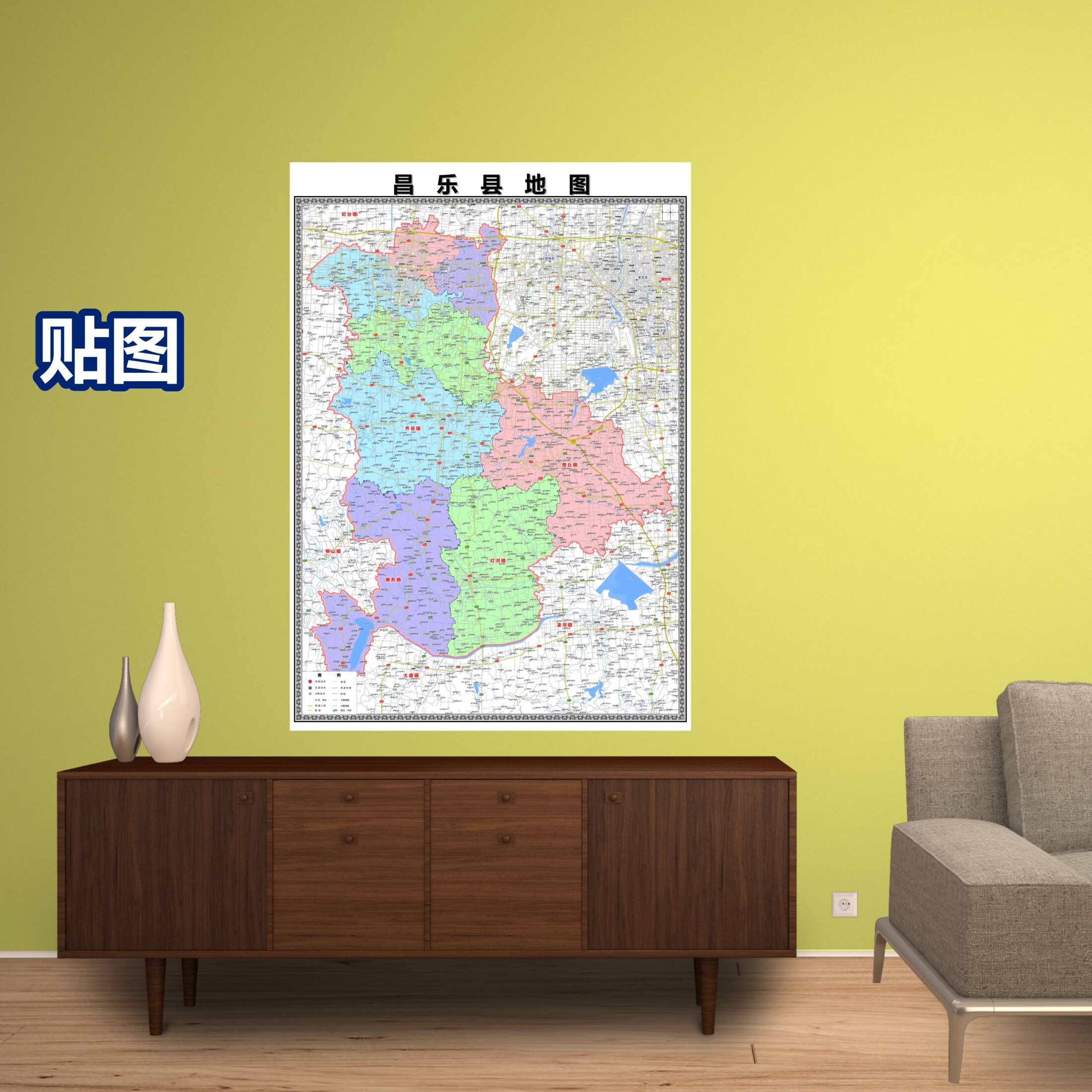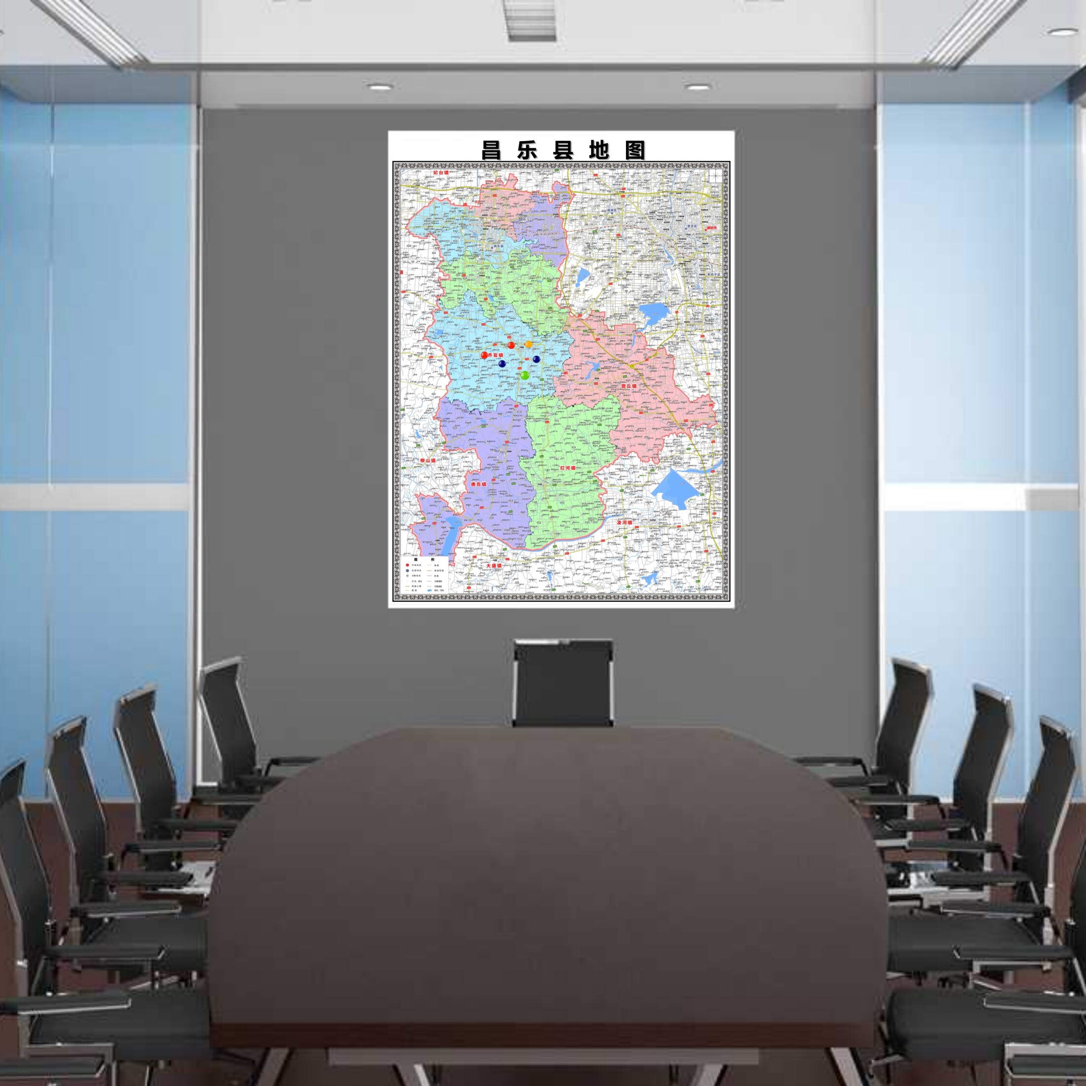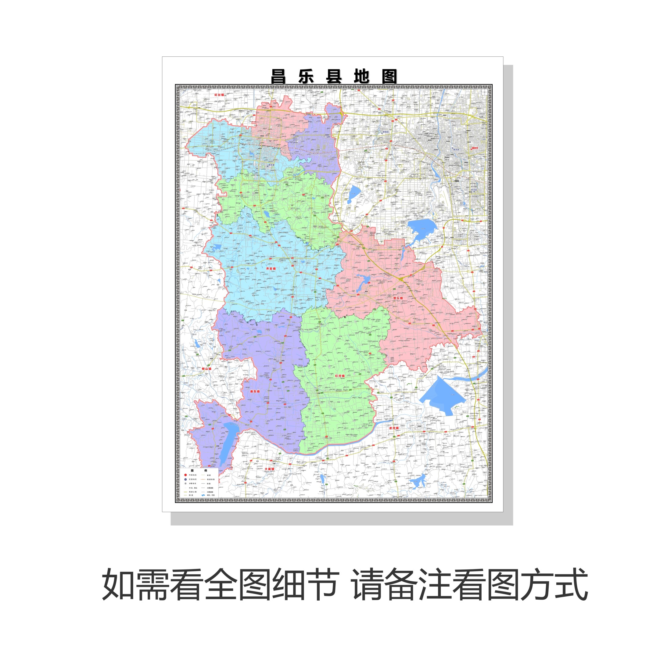 📚 昌乐县区域村庄交通道路乡镇分布地域磁性办公室挂图