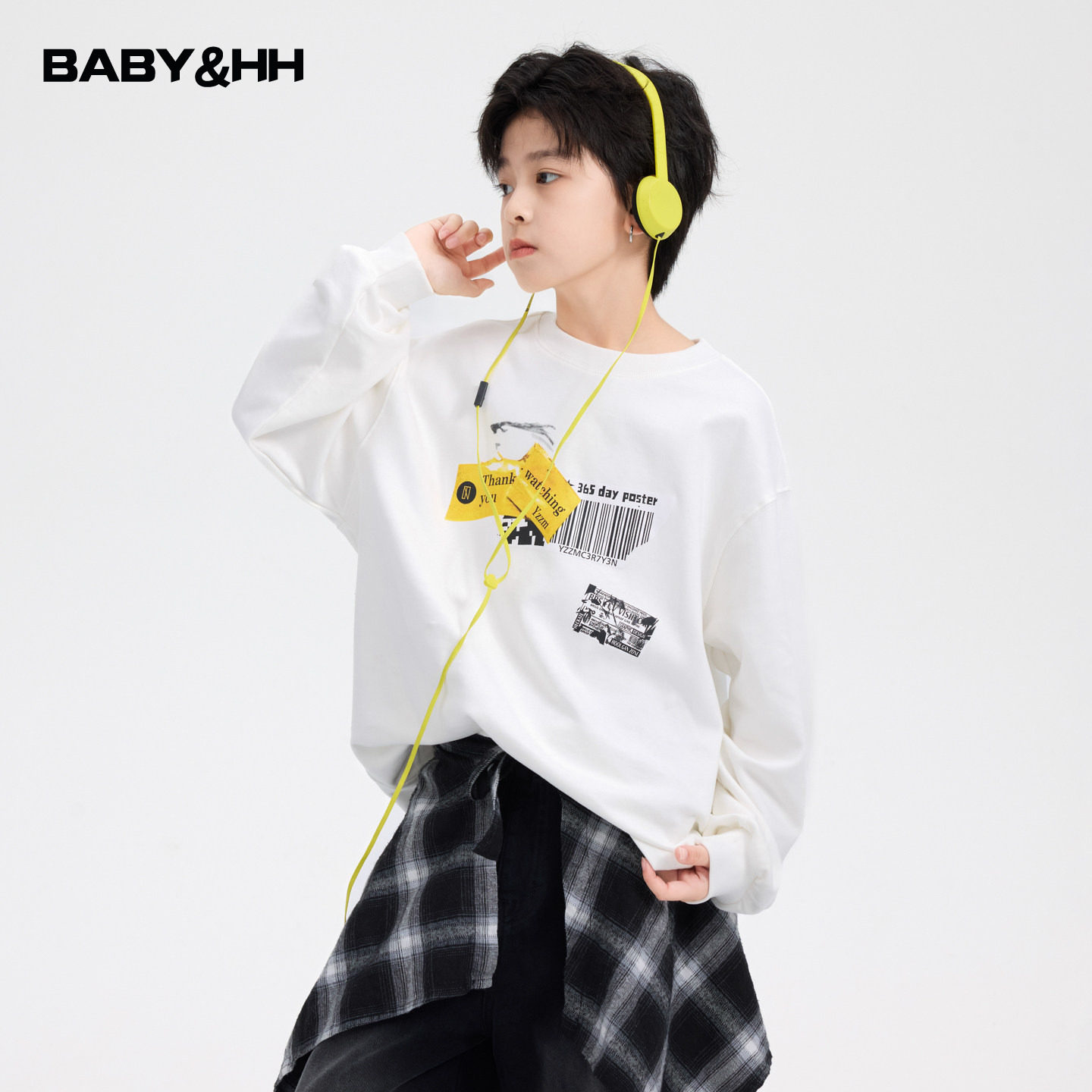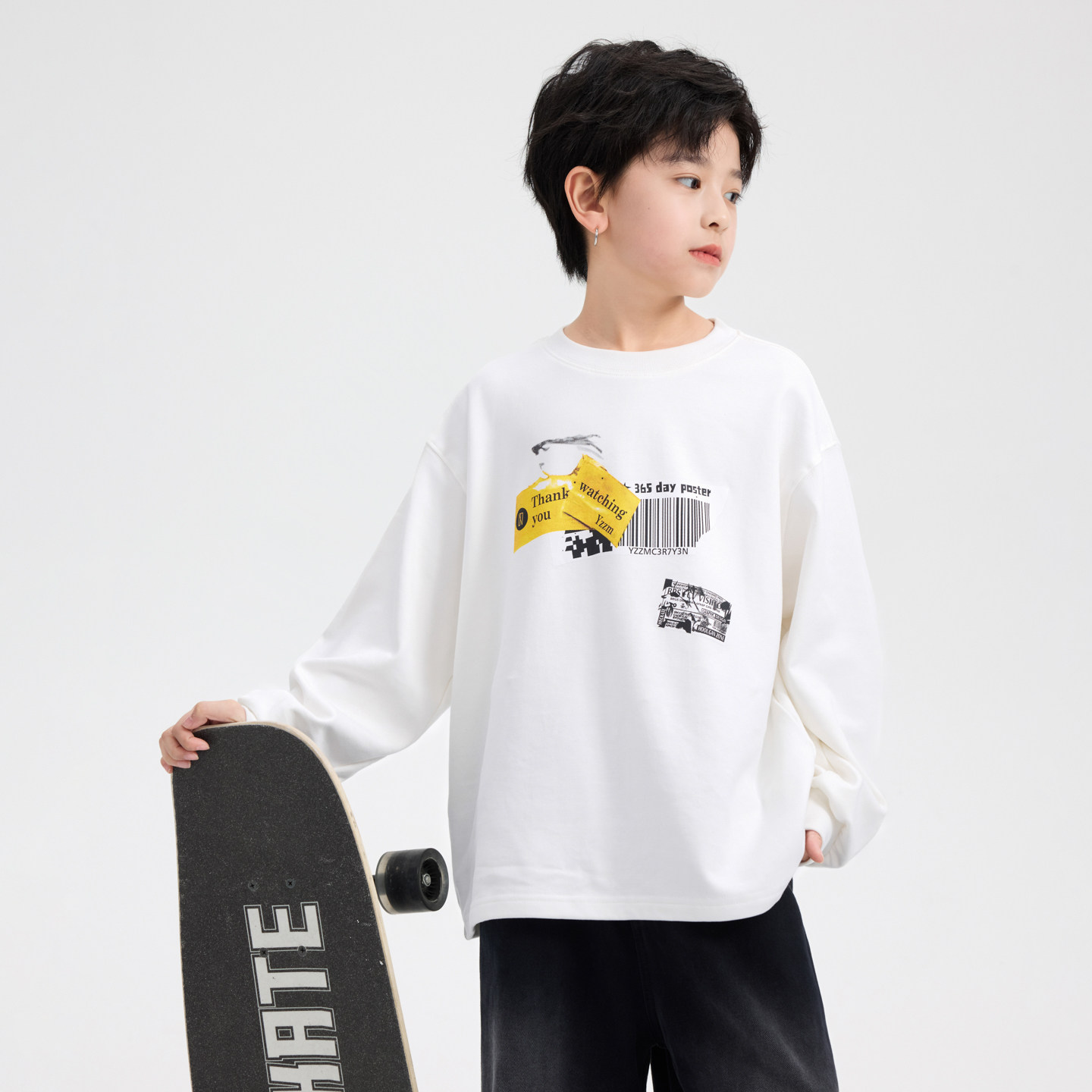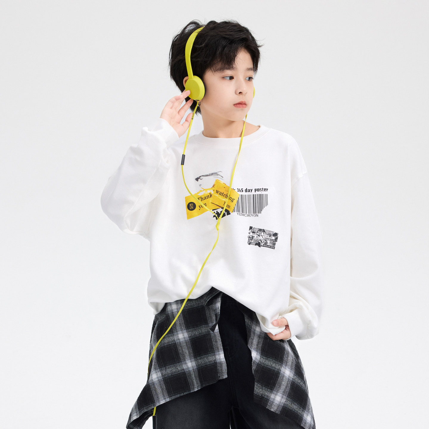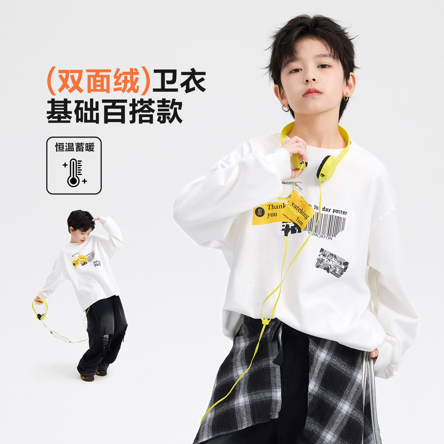 📚 男童秋冬季韩范白色加绒宽松圆领卫衣2026新款儿童装加厚打底上衣