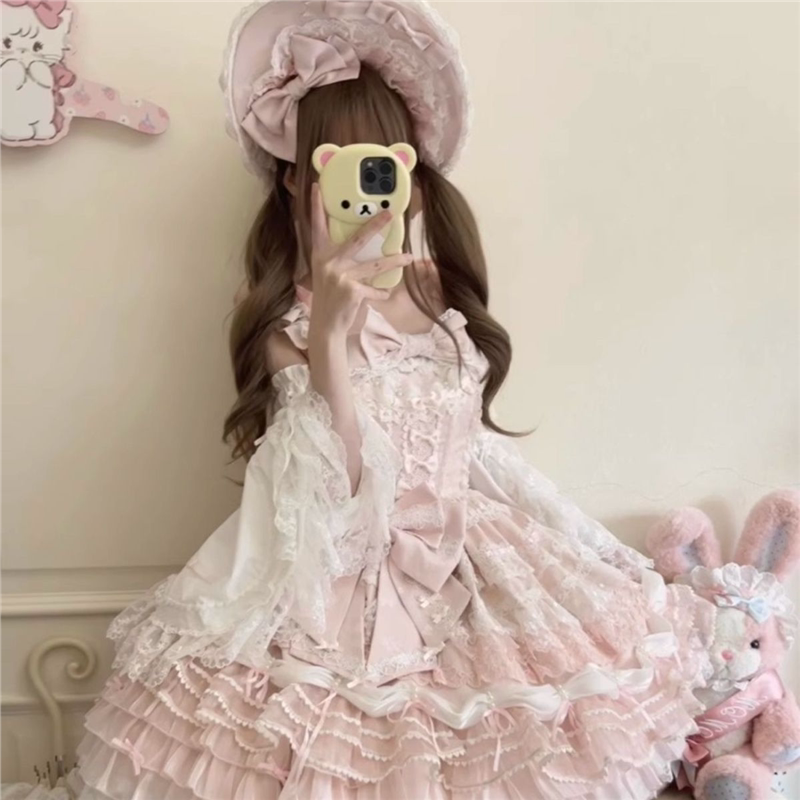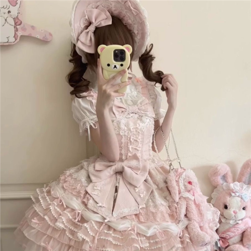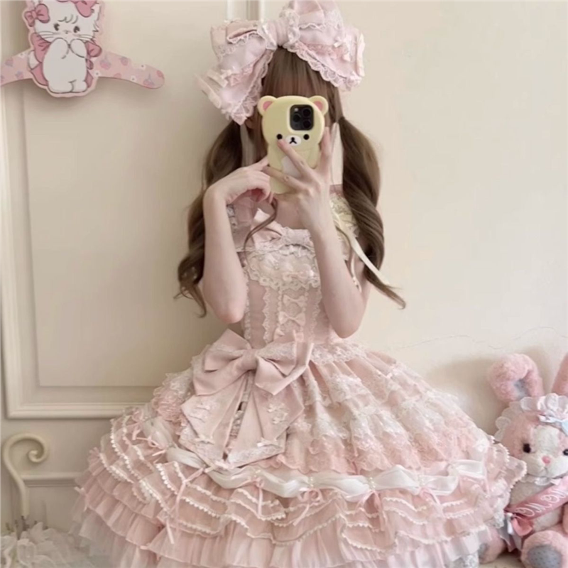 📚 缘结恋曲粉色花嫁洋装收腰生日成人礼吊带JSK连衣裙lolita裙子