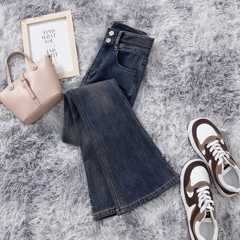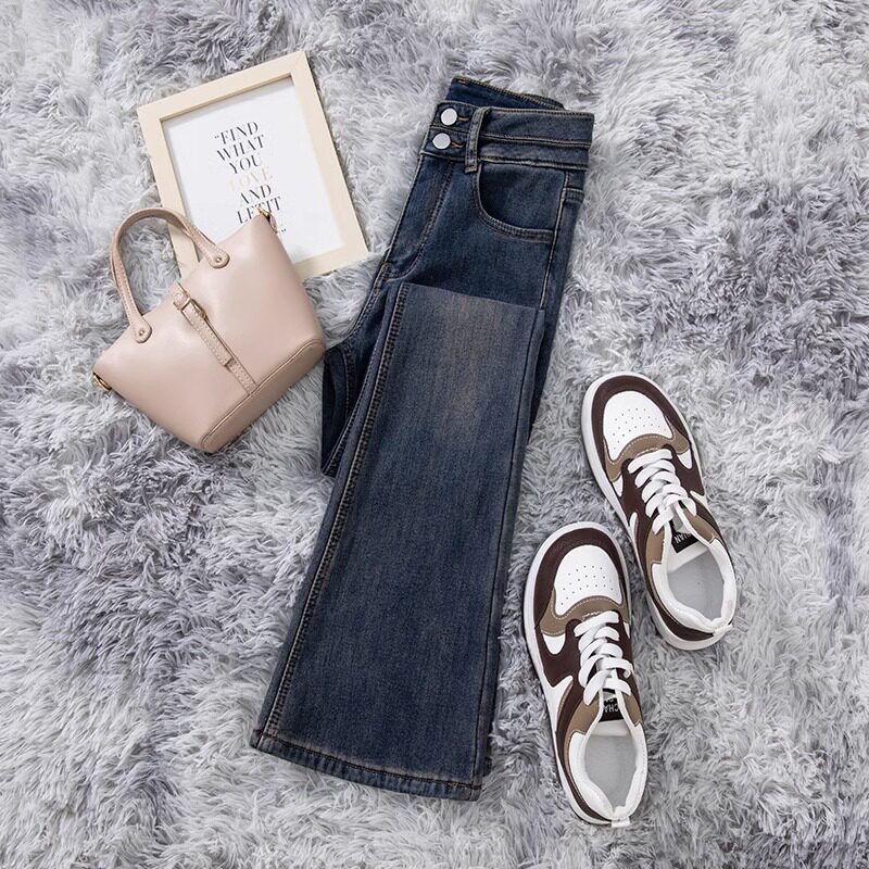 📚 小个子微喇牛仔裤子女新款2025爆款春秋水泥灰高腰显瘦九分喇叭裤