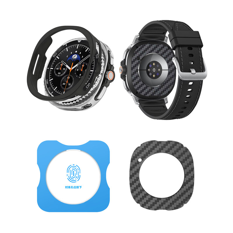 📚 AKGLEADER手表保护壳钢化膜背膜套装适用于三星Galaxy watch 8 classic手表防摔表壳秒贴钢化膜碳纤维纹背膜