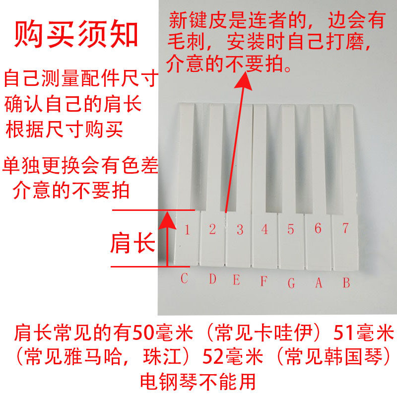 📚 钢琴配件白键皮雅马哈无侧边维修米白卡哇伊珠江专用单独键皮亮白