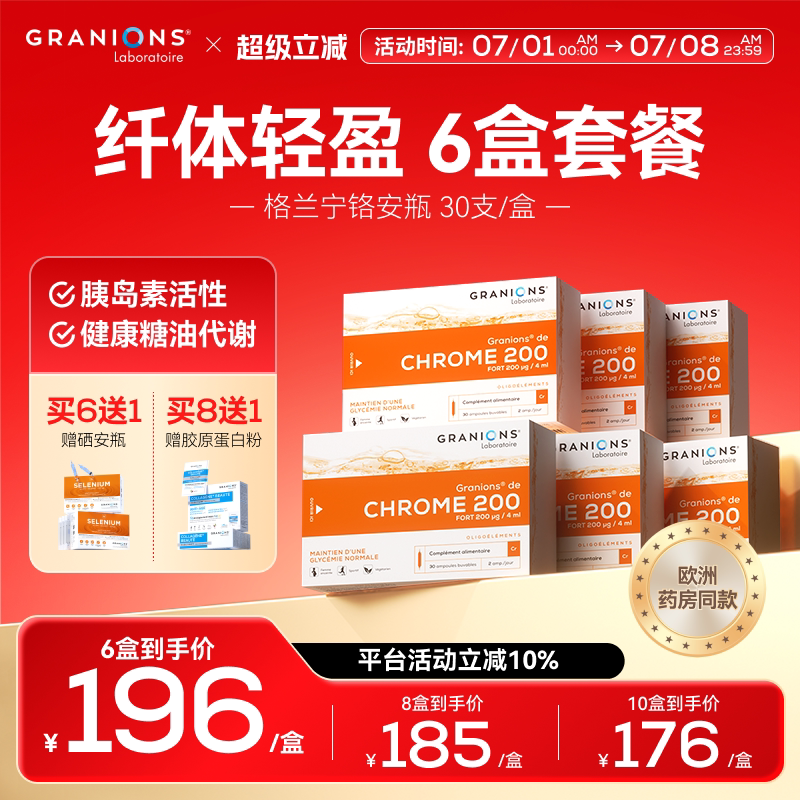 58¥ CZ009 tOOP58siUfT¥ https://m.tb.cn/h.isQvq2t Granions格兰宁控糖铬安瓶代谢碳糖控卡腰线体重大基数管理6盒 --------------------- 【原售价】1,848元 【现售价】1,848元。