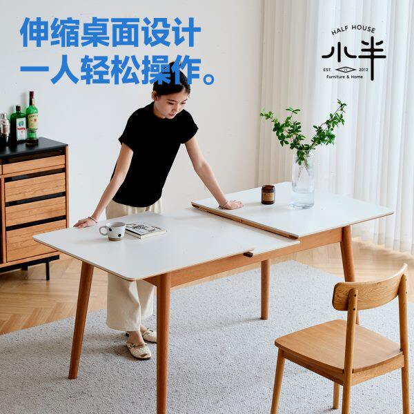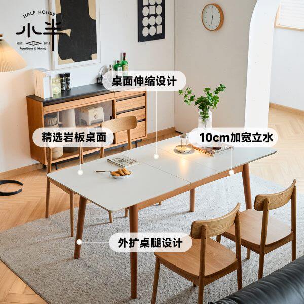 📚 小半家具可伸缩实木岩板餐桌小户型家用北欧饭桌长方形折叠原木桌