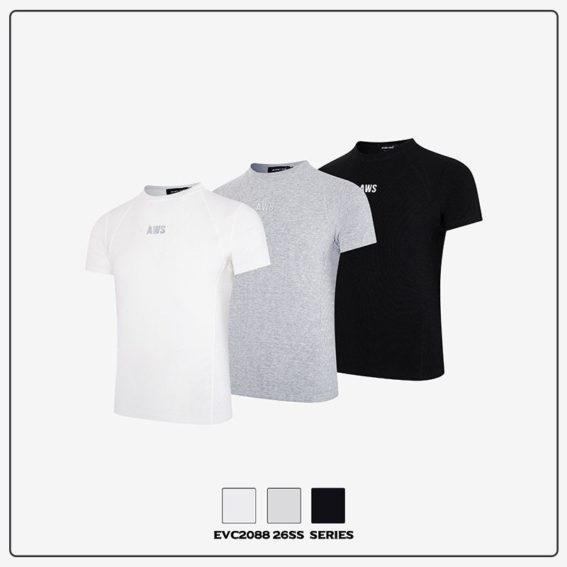 📚 EVC*美式高弹坑条修身短袖T恤胶印字母印花健身休闲肌理质感上衣