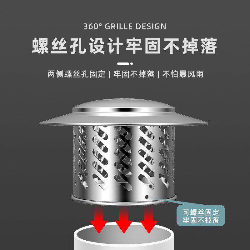 📚 304不锈钢防h雨帽屋顶排气管罩烟伞防鸟鼠通风口透气烟囱烟道风帽