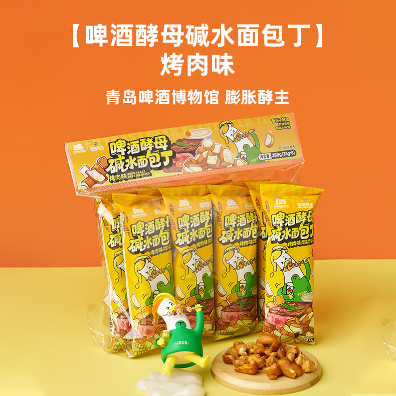 📚 青岛啤酒博物馆啤酒酵母面包丁烤肉新口味马年伴手礼零食食品礼盒