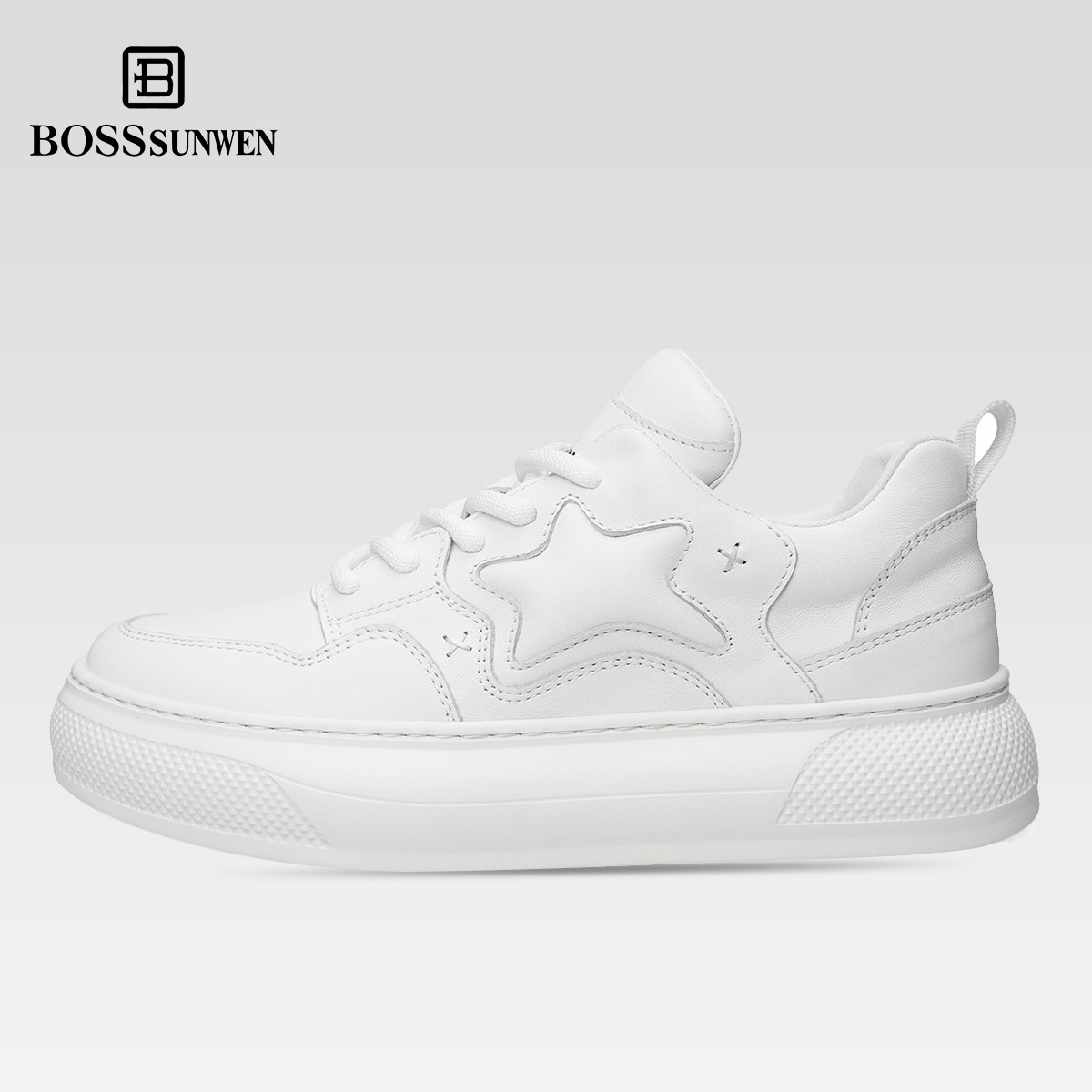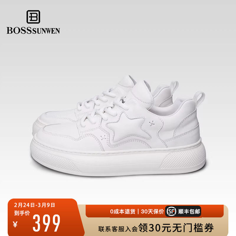 📚 BOSSSUNWEN/博斯·绅威网球板鞋 潮流休闲百搭简约星星鞋厚底增高
