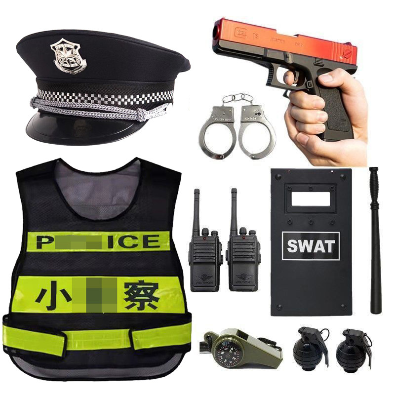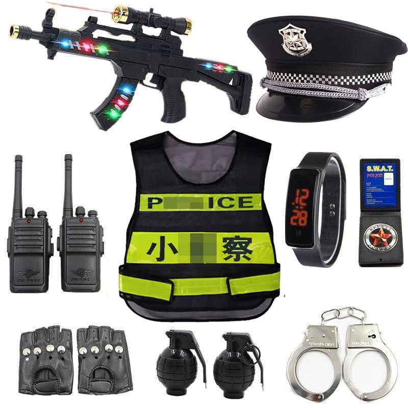 📚 儿童小警察玩具套装黑猫警长帽子衣男孩特种兵作战装备衣服玩具枪