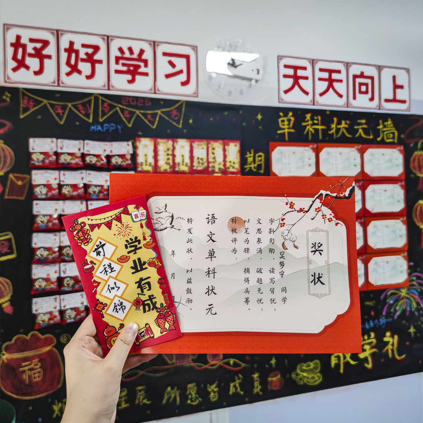 📚 新学期开学祝福卡教室文化墙布置新年创意红包袋期末单科状元奖状