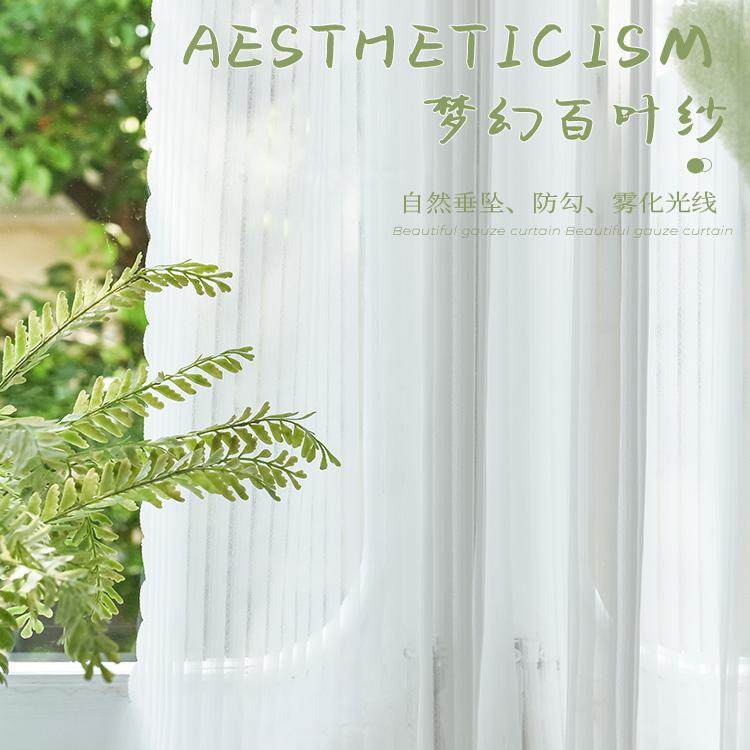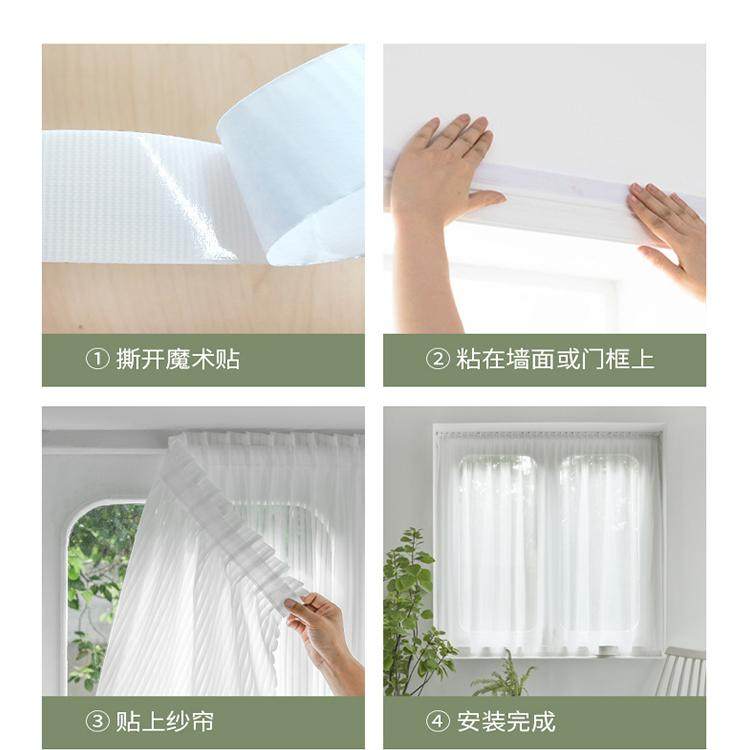 📚 魔术贴窗帘纱帘免打孔简易安装透光不透人卧室飘窗白纱小窗户短帘