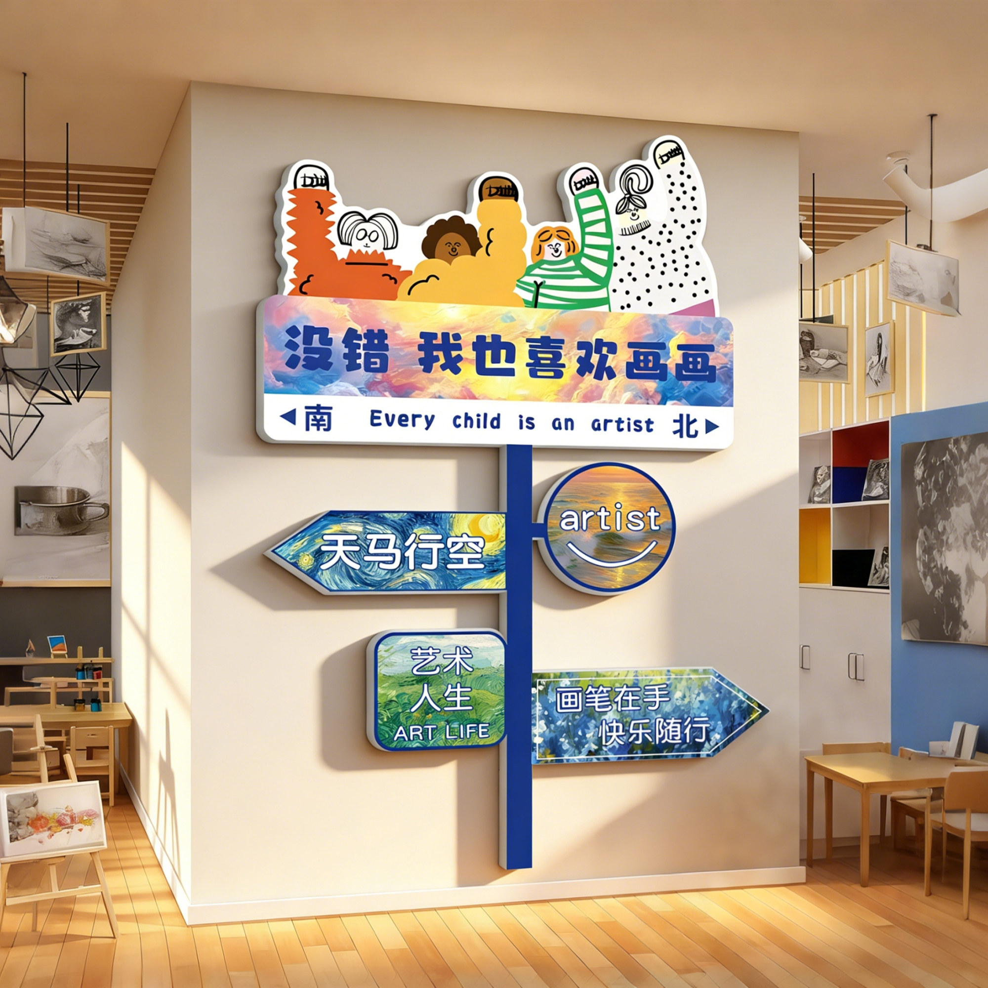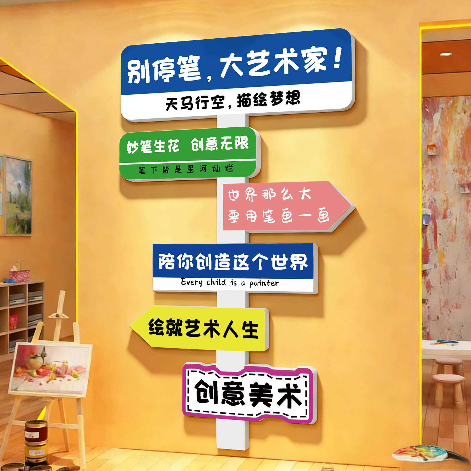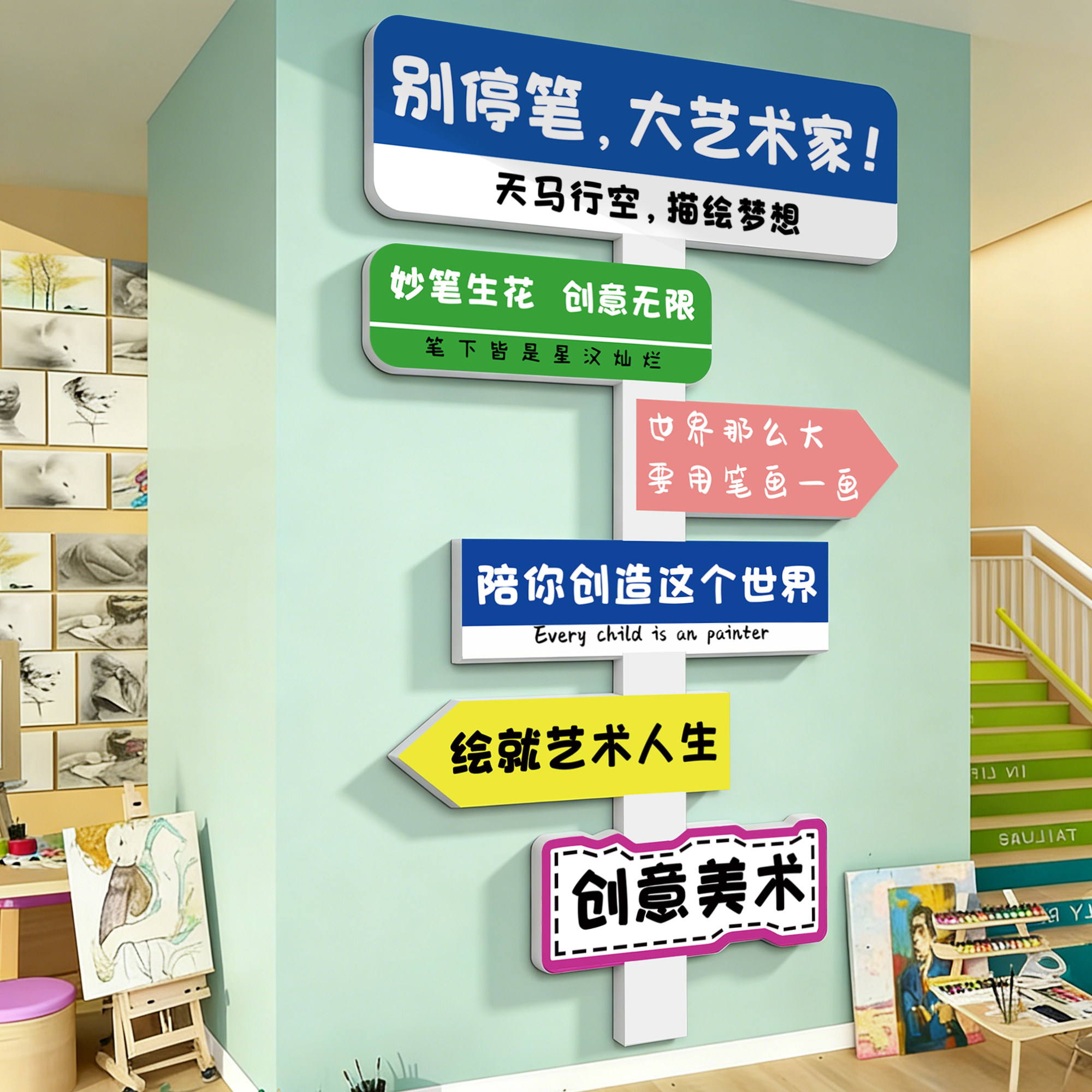 📚 美术教室画展网红打卡路牌背景墙面贴纸培训机构开学氛围布置装饰