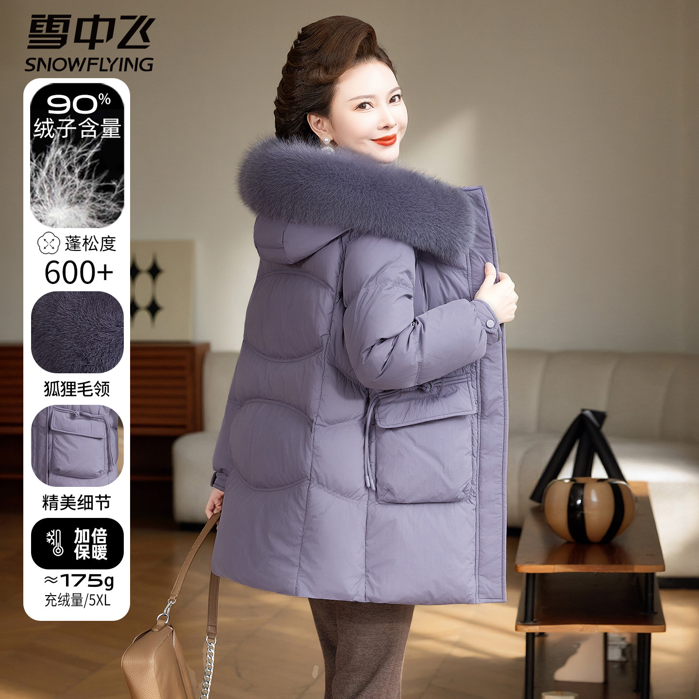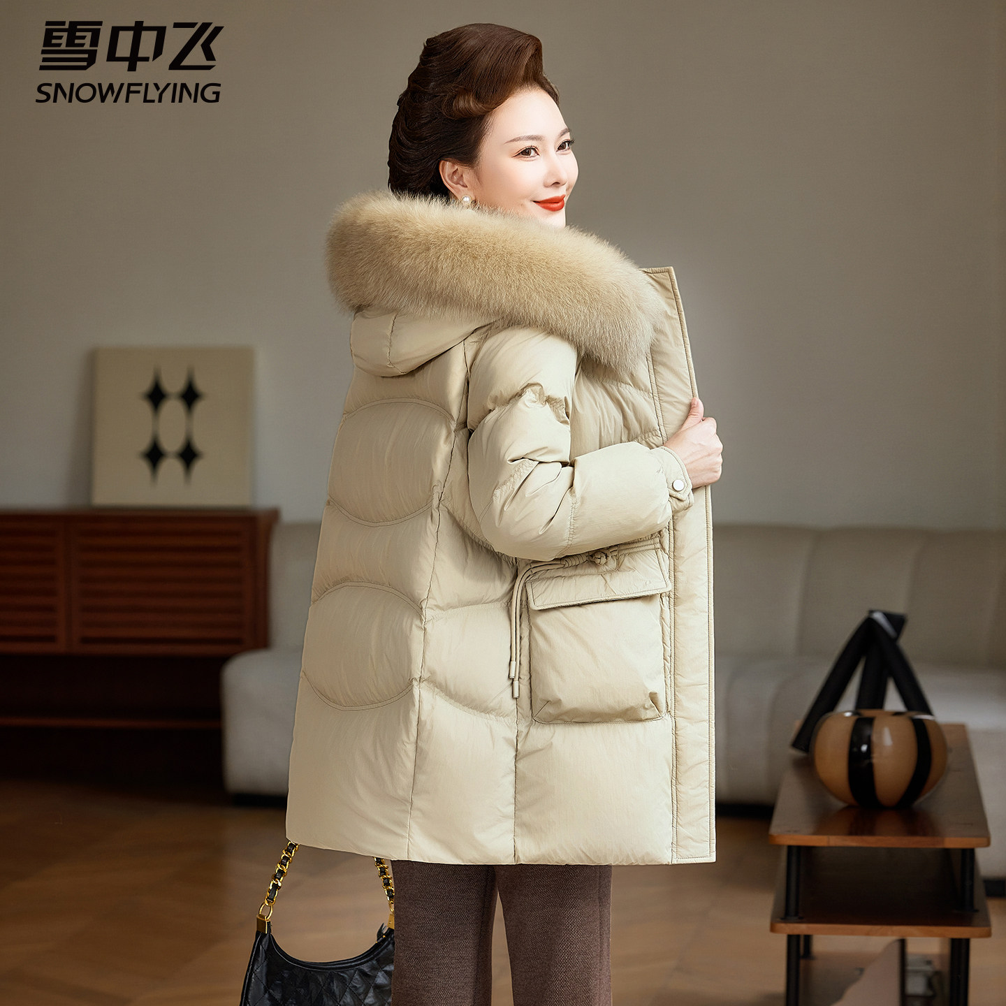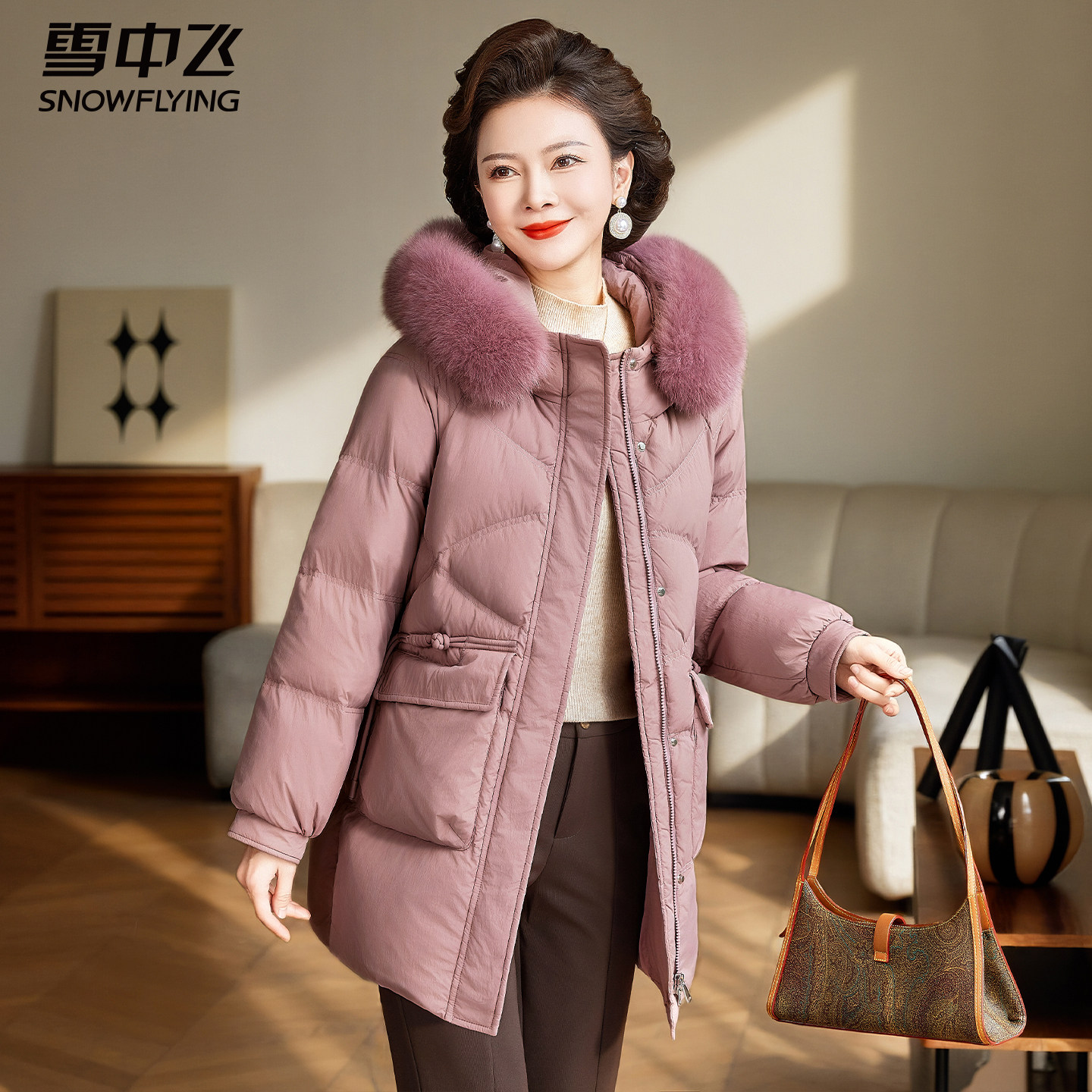 📚 雪中飞羽绒服女款2025新款中年妈妈毛领连帽冬装中老年中长款外套